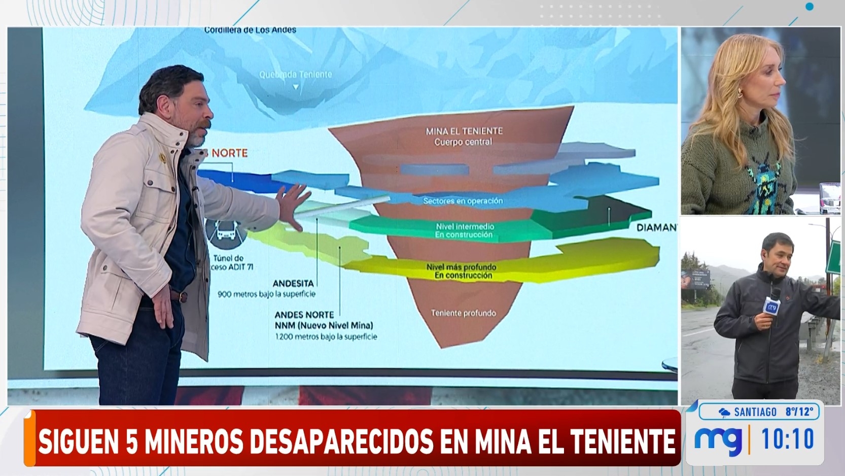En Mucho Gusto, los conductores José Antonio Neme y Karen Doggenweiler revisaron una gráfica que muestra cómo es la mina El Teniente, con sus diferentes niveles.