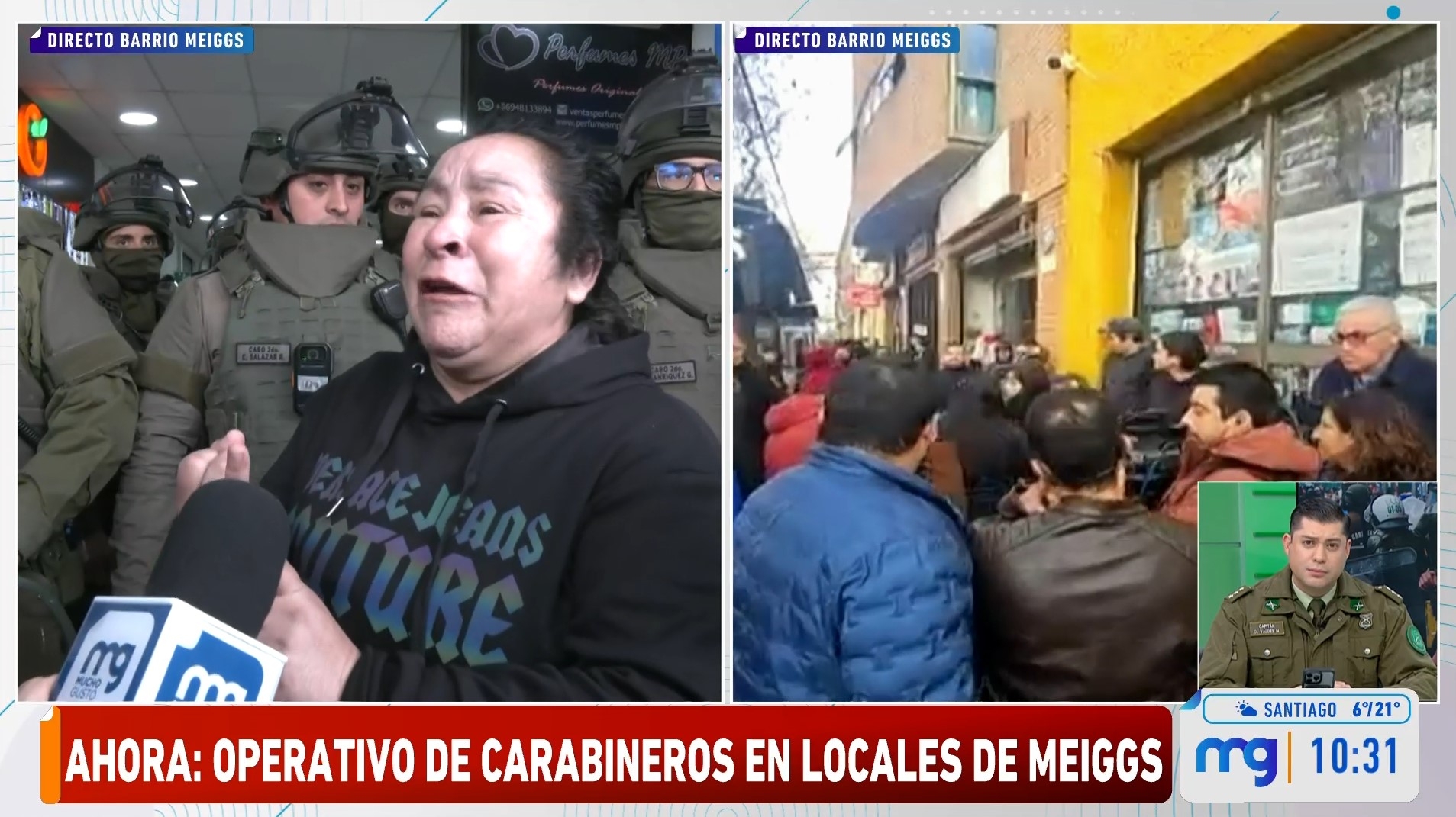 En medio del procedimiento, que se desarrolló específicamente en Salvador Sanfuentes 2737, una de las comerciantes, quien se encontraba en su local, comenzó a vociferar contra los efectivos y los medios de comunicación.