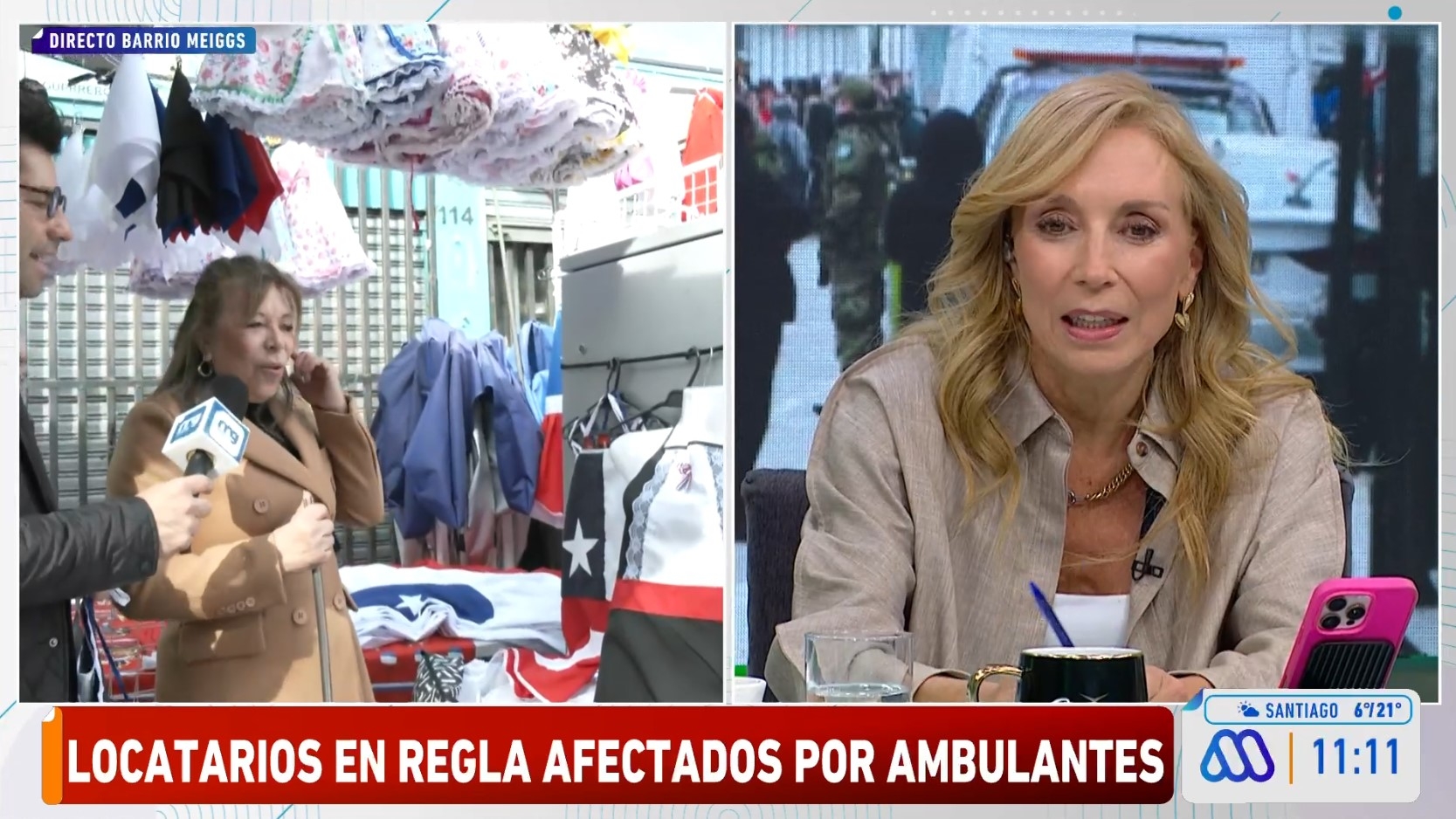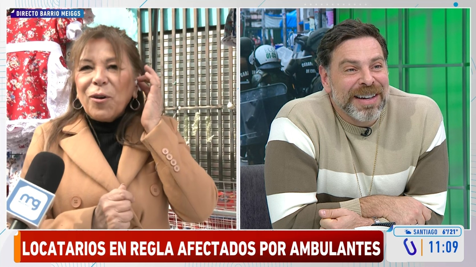 La vendedora, llamada Fanny, se encontró con el periodista Karim Butte en medio del operativo policial por productos falsificados en calle Salvador Sanfuentes, donde aprovechó de decir que es una fiel seguidora de los conductores del matinal.