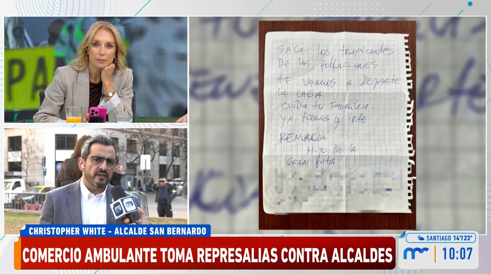 En diálogo con Mucho Gusto, el alcalde de San Bernardo, Christopher White, abordó la amenaza de muerte que recibió en su contra y de su familia, por medio de una carta que llegó hasta la Municipalidad.