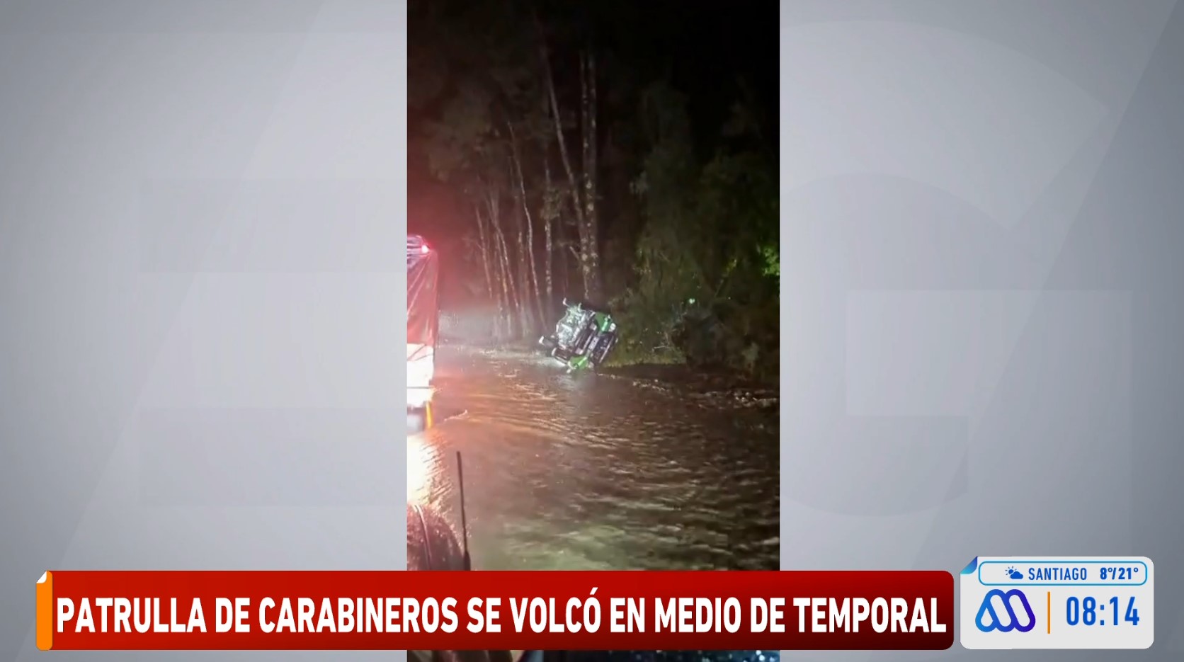 Dos funcionarios de Carabineros fueron rescatados por un grupo de vecinos y bomberos, luego que su patrulla volcara en medio de un aluvión en Puerto Varas, en la región de Los Lagos.