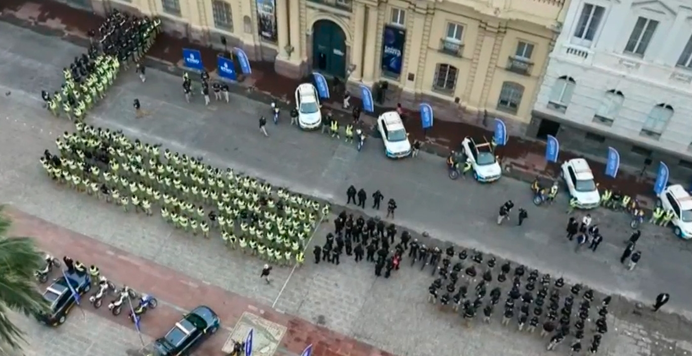 El alcalde de Santiago, Mario Desbordes, presentó durante la mañana de este martes a un nuevo contingente de 300 agentes de seguridad para la comuna, con el objetivo de combatir el comercio ambulante.