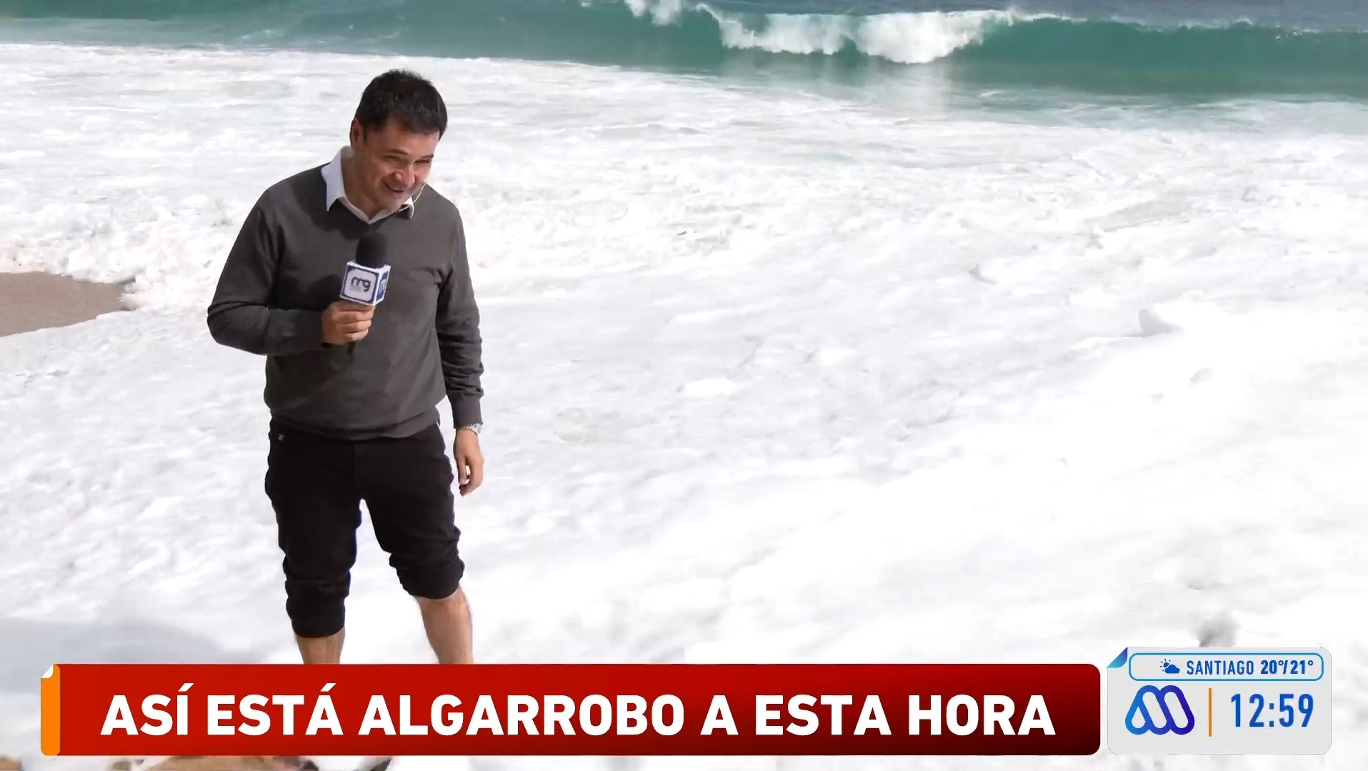 Periodista de Mucho Gusto es víctima de inesperada ola en Algarrobo: Terminó mojado hasta la rodilla