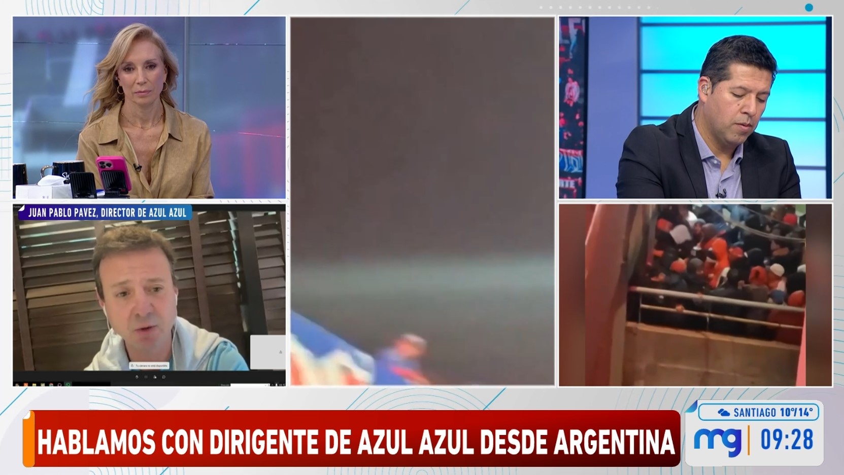 En diálogo con Mucho Gusto, Juan Pablo Pavez, miembro del directorio de Azul Azul, repudió los hechos de violencia ocurridos la noche del miércoles en Buenos Aires, donde calificó como un "horror" la organización de Independiente por el encuentro con Universidad de Chile.