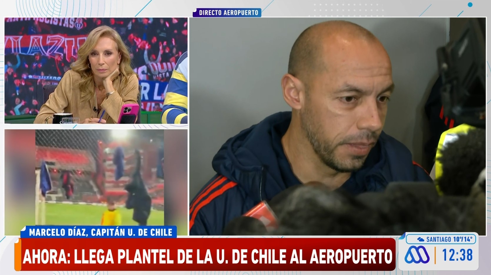 En su llegada al Aeropuerto de Santiago, Marcelo Díaz, se pronunció en nombre del plantel de Universidad de Chile por los graves incidentes ocurridos en el partido con Independiente de Avellaneda y el cuadro azul, por la vuelta de los octavos de final de la Copa Sudamericana.