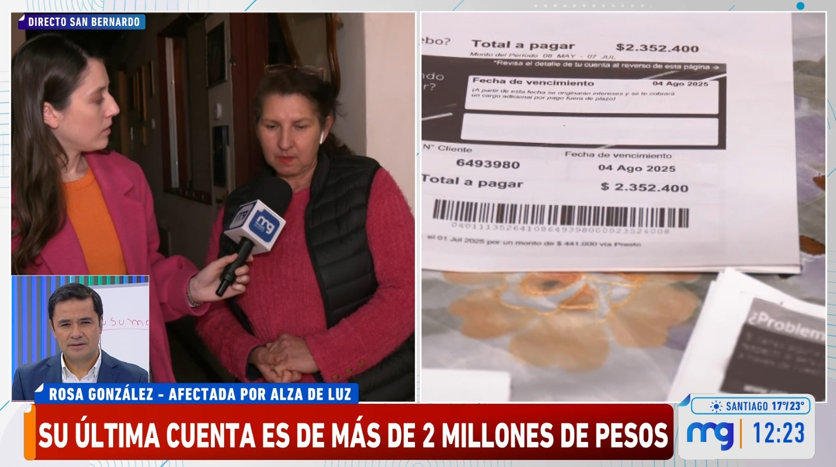 Más de 600 clientes denuncian excesivas cuentas de luz, donde los montos superan los $2 millones en algunos casos. Rosa González es una de las afectadas, cuyo gasto subió de los $80 mil a más de $1 millón en solo meses.