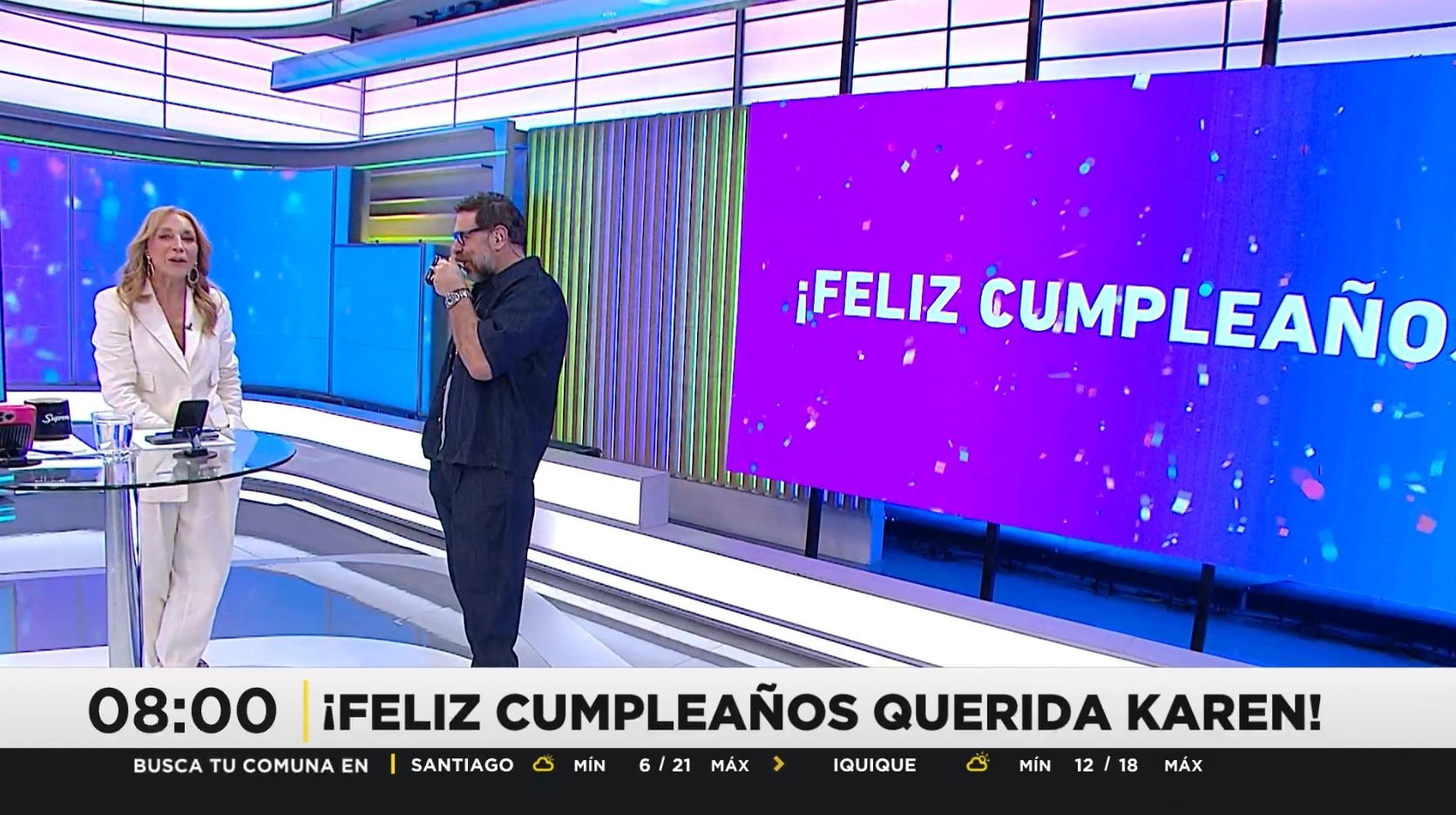 Este miércoles 27 de agosto, nuestra Karen Doggenweiler celebra su cumpleaños número 56. La aclamada conductora de Mucho Gusto y animadora del Festival de Viña del Mar festeja un año más de vida, y por ello, recibió una serie de saludos de sus compañeros de Mega.