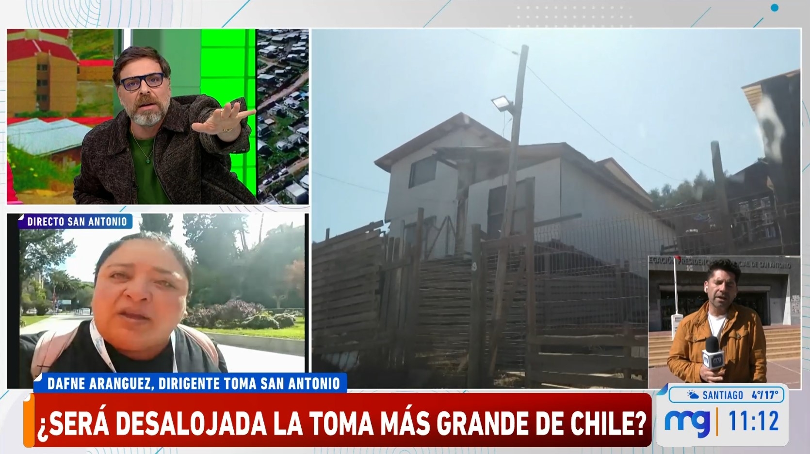 En el marco de la reunión clave, que cuenta con la participación de los dueños del terreno, el Ministerio de Vivienda y Urbanismo (Minvu), la Subsecretaría del Interior y el municipio de San Antonio, el equipo del matinal de Mega tomó contacto con Dafne Aranguez, aunque terminó debatiendo con el animador.