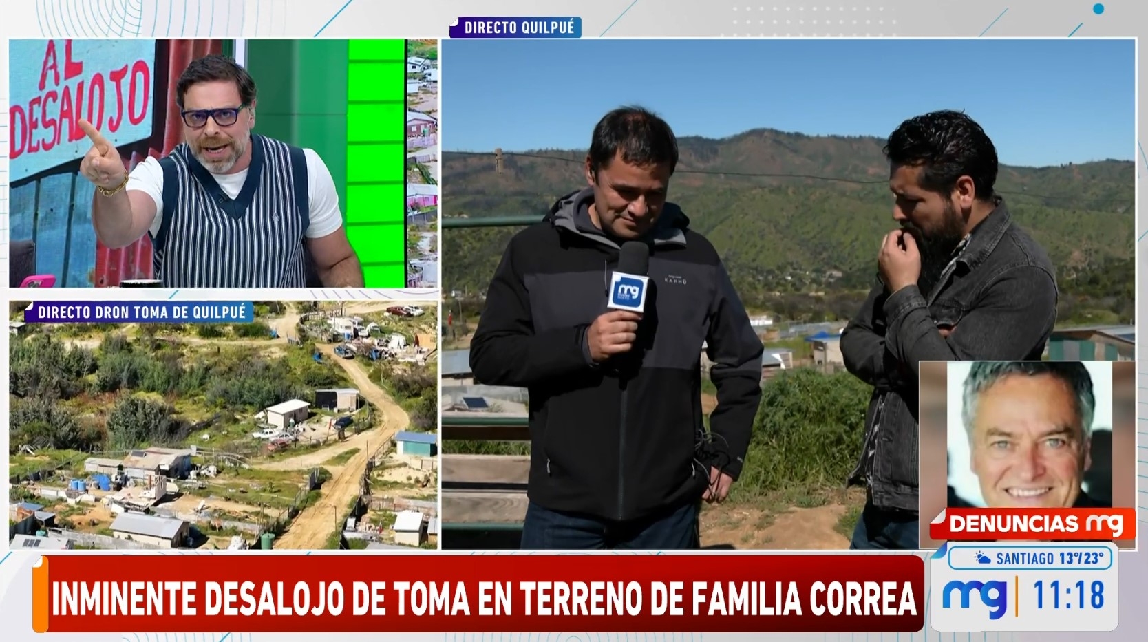 Todo ocurrió en medio de la entrevista con la pobladora Jazmín Durán, quien expresó su negativa de abandonar los terrenos usurpados a la familia Correa, asegurando que si bien "hubo un asesinato, nosotros no tenemos nada que ver con la muerte de don Alejandro. De hecho, si estuviera vivo nosotros ya habríamos hablado con él, porque con él se podía hablar".