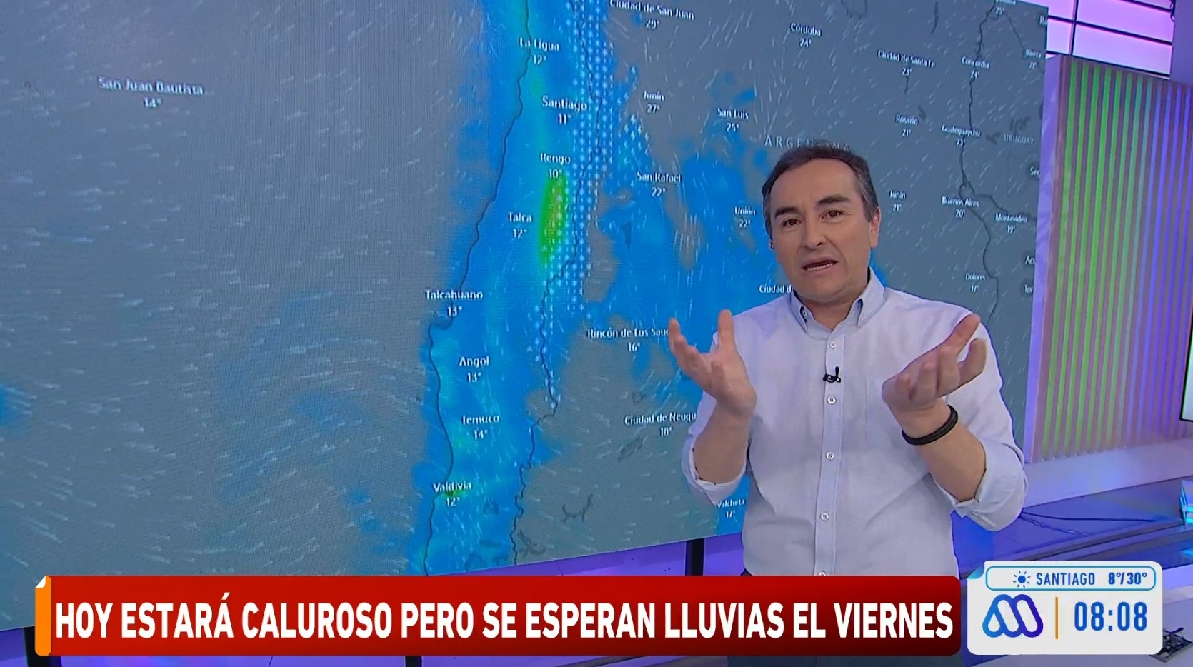 Según explicó durante Mucho Gusto, el fenómeno llegará en la tarde noche del jueves, provocando precipitaciones desde la región de Aysén hasta la costa del Biobío, para la madrugada alcanzar el interior de esta región.