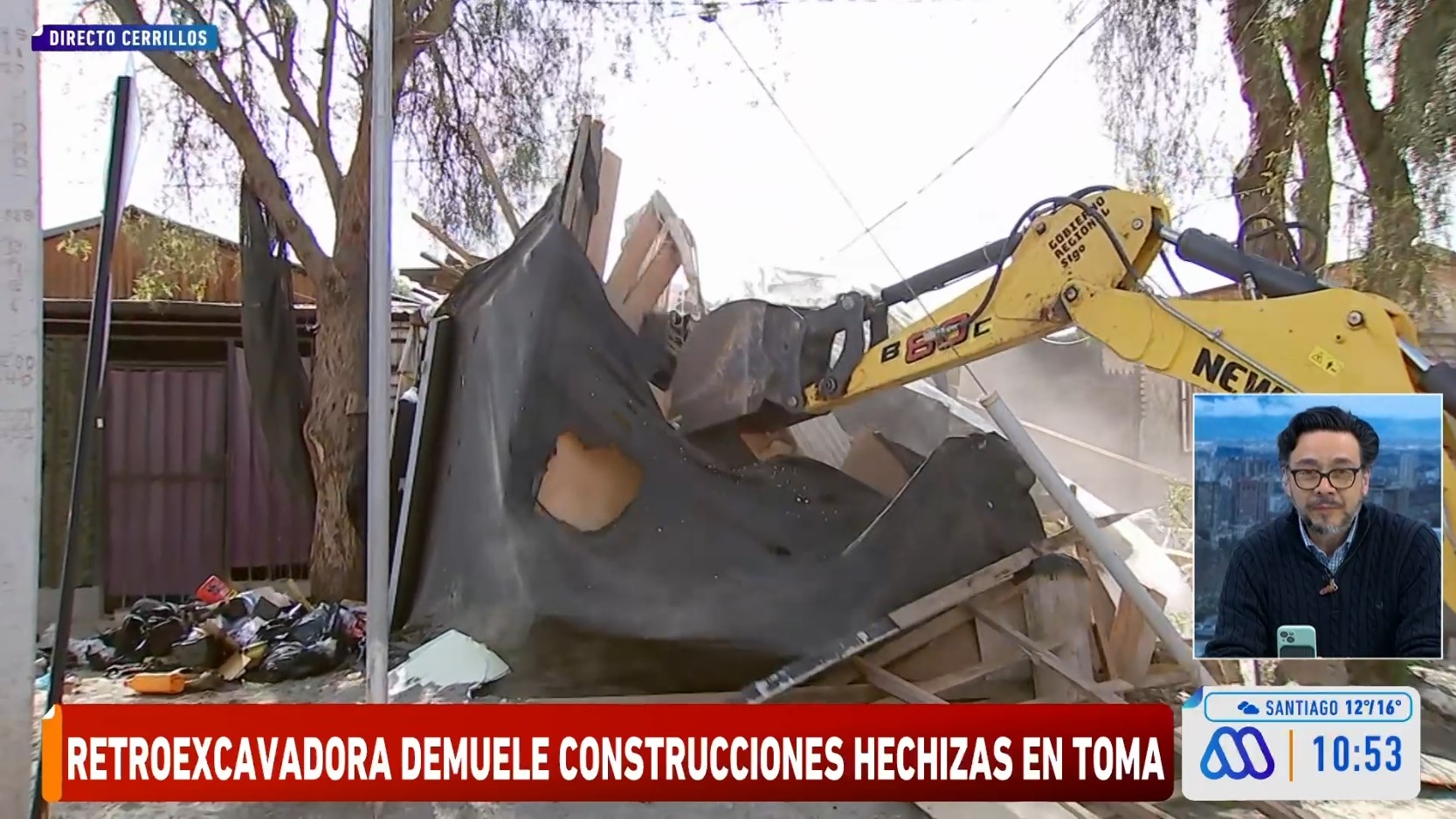 Con maquinaria pesada: Demuelen construcciones ilegales en la toma Nuevo Amanecer de Cerrillos