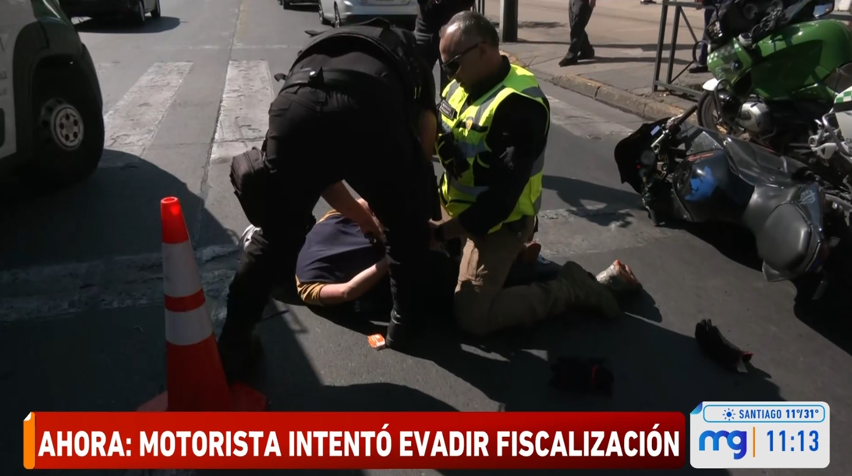 Quedó registrada su captura: Motociclista detenido tras intentar evadir control y chocar a inspector en Ñuñoa
