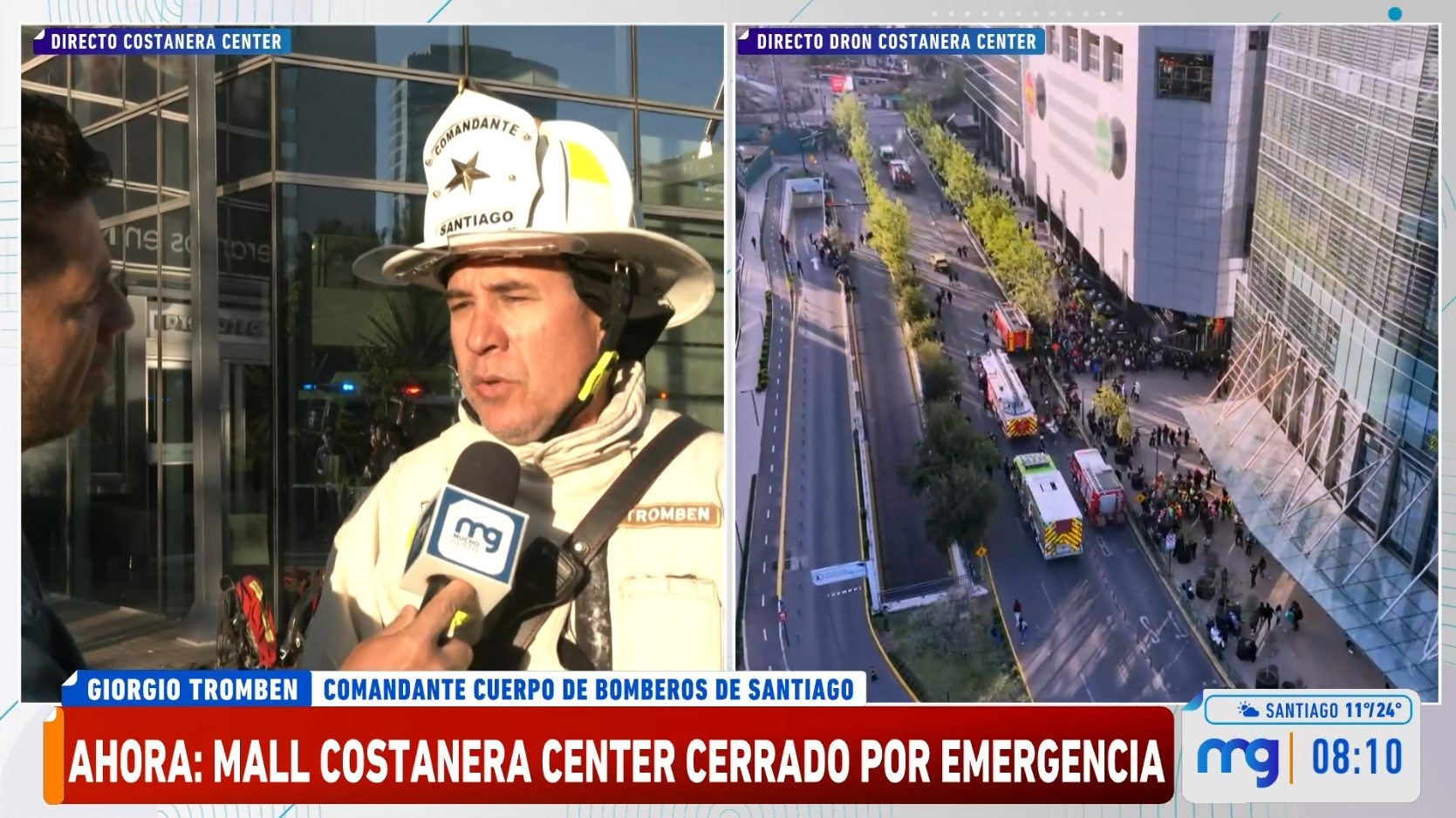 El comandante del Cuerpo de Bomberos de Santiago, Giorgio Tromben Marcone, detalló en Mucho Gusto que al hacer ingreso a la tienda "se encuentra con fuego en la parte superior, preliminarmente era una pantalla corporativa, una televisión, de aproximadamente 3 metros por 2 metros".