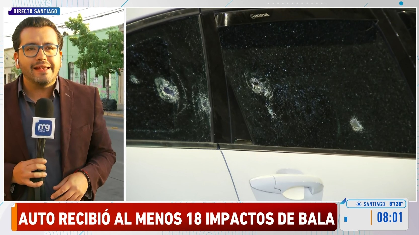 Personal de Carabineros investiga la detención de un conductor en estado de ebriedad, cuyo vehículo tenía al menos 18 impactos balísticos en el sector de Sierra Bella con Maule, en pleno barrio Matta, comuna de Santiago.