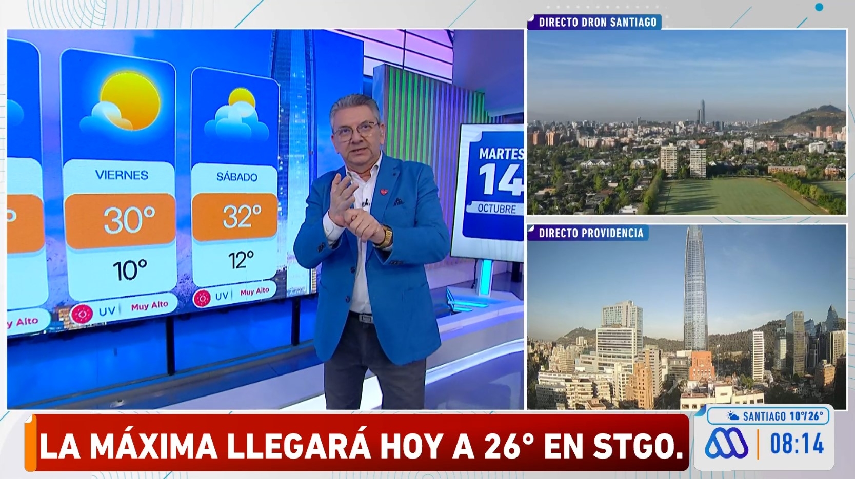 Durante su participación en Mucho Gusto, Don Jaime manifestó que este jueves comienza "un ciclo de altas, incluso, muy altas temperaturas", donde las extremas oscilarán entre 9 °C y 28 °C.