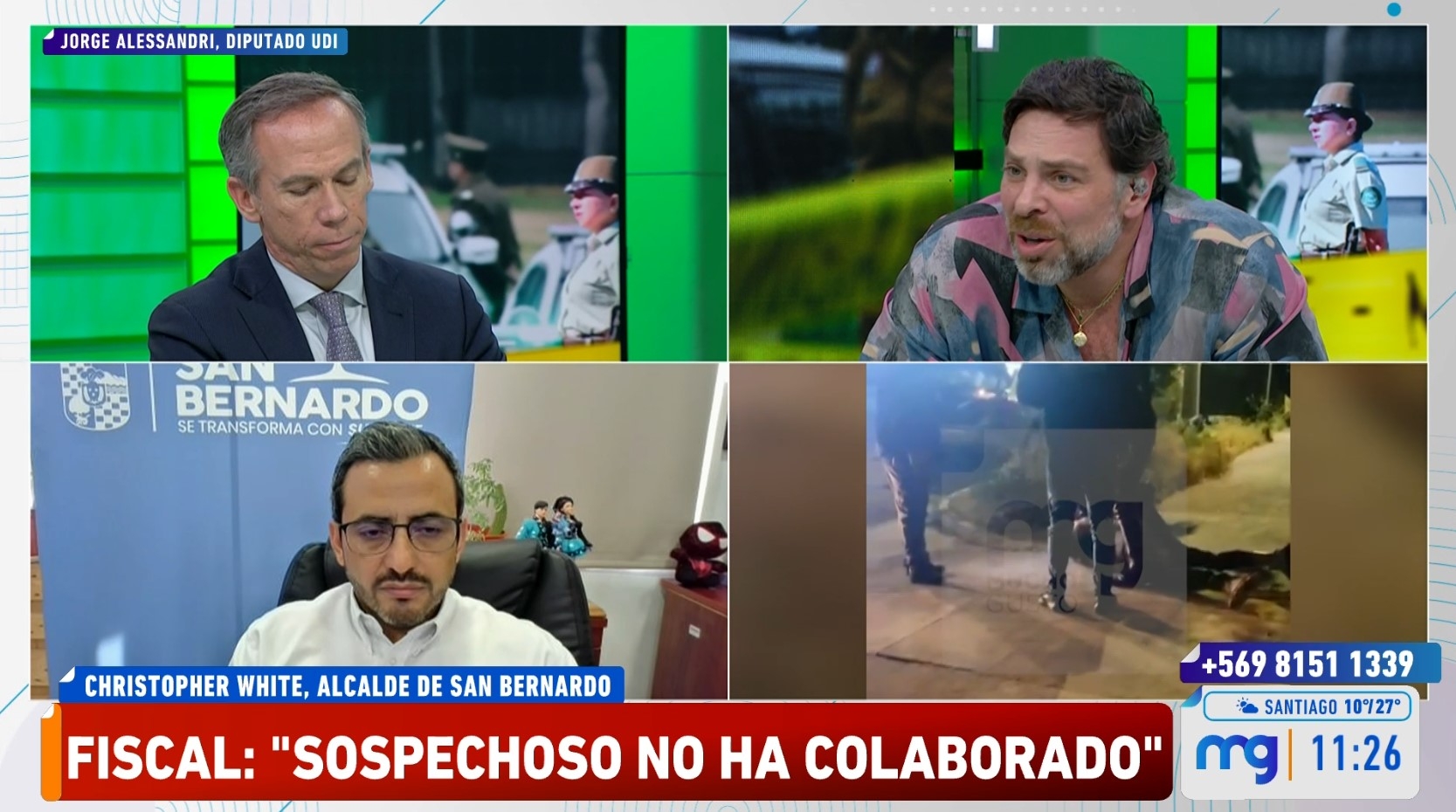 El diputado Jorge Alessandri (UDI) y el senador Juan Luis Castro (PS) participaron del debate político liderado por José Antonio Neme durante la mañana de este jueves en Mucho Gusto, a raíz de la crisis de seguridad que atraviesa el país.