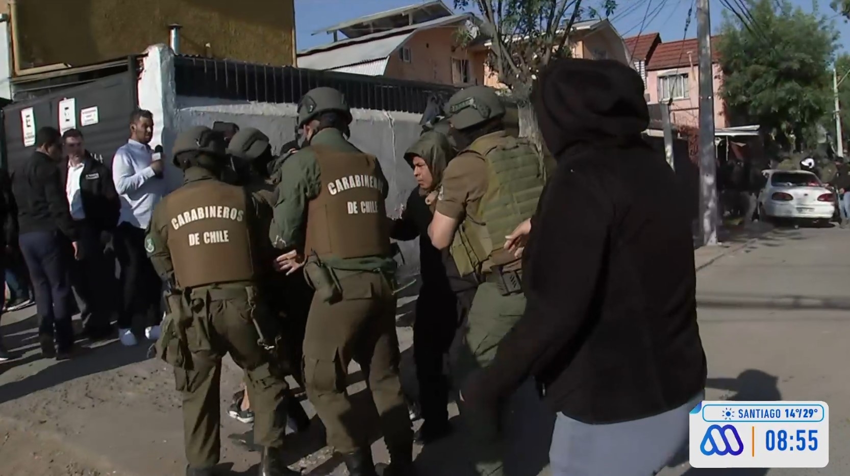En la instancia, lanzaron piedras a la prensa y personal de Carabineros, por lo que dos personas resultaron detenidas. Durante el operativo se encontró un vehículo con encargo por robo.