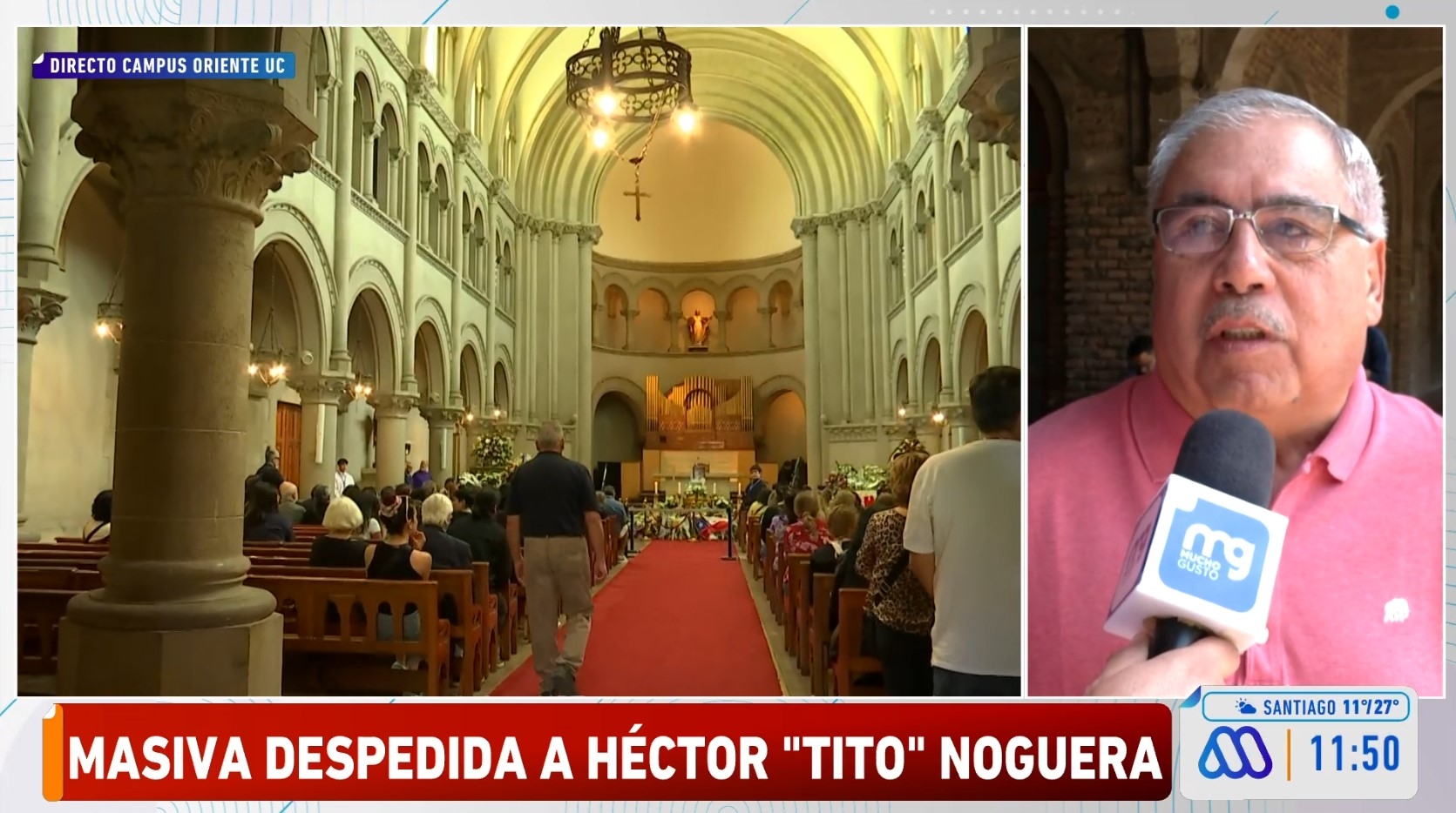Una gran cantidad de personas ha acompañado la despedida de Héctor Noguera en su velatorio realizado dentro del Templo Campus Oriente de la Pontificia Universidad Católica, en la comuna de Providencia.