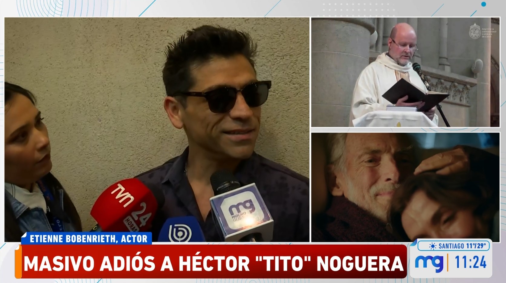 Así, Etienne arribó esta mañana al Campus Oriente de la Universidad Católica para rendirle homenaje a su exsuegro y compañero en las artes escénicas.