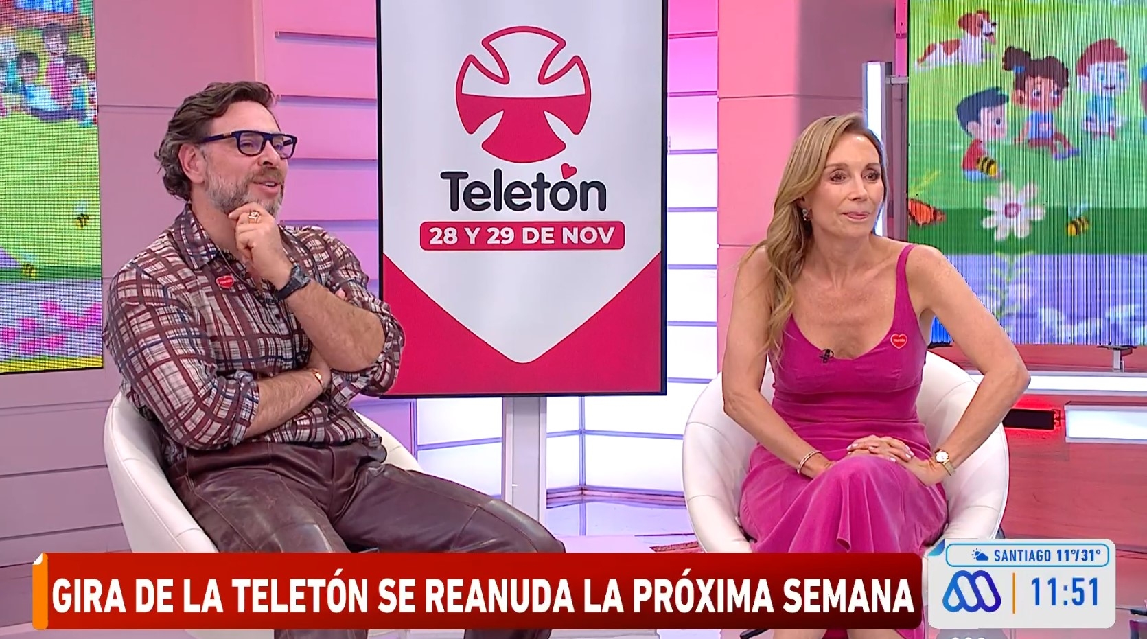 En diálogo con José Antonio Neme y Karen Doggenweiler, el reconocido animador presentó a tres robots desarrollados como parte de un trabajo colaborativo entre la Fuerza Aérea de Chile (FACh), la Escuela de Ingeniería de la Universidad de Santiago (Usach) y Teletón, para ayudar a los pacientes en su rehabilitación, apoyo emocional e inserción laboral.