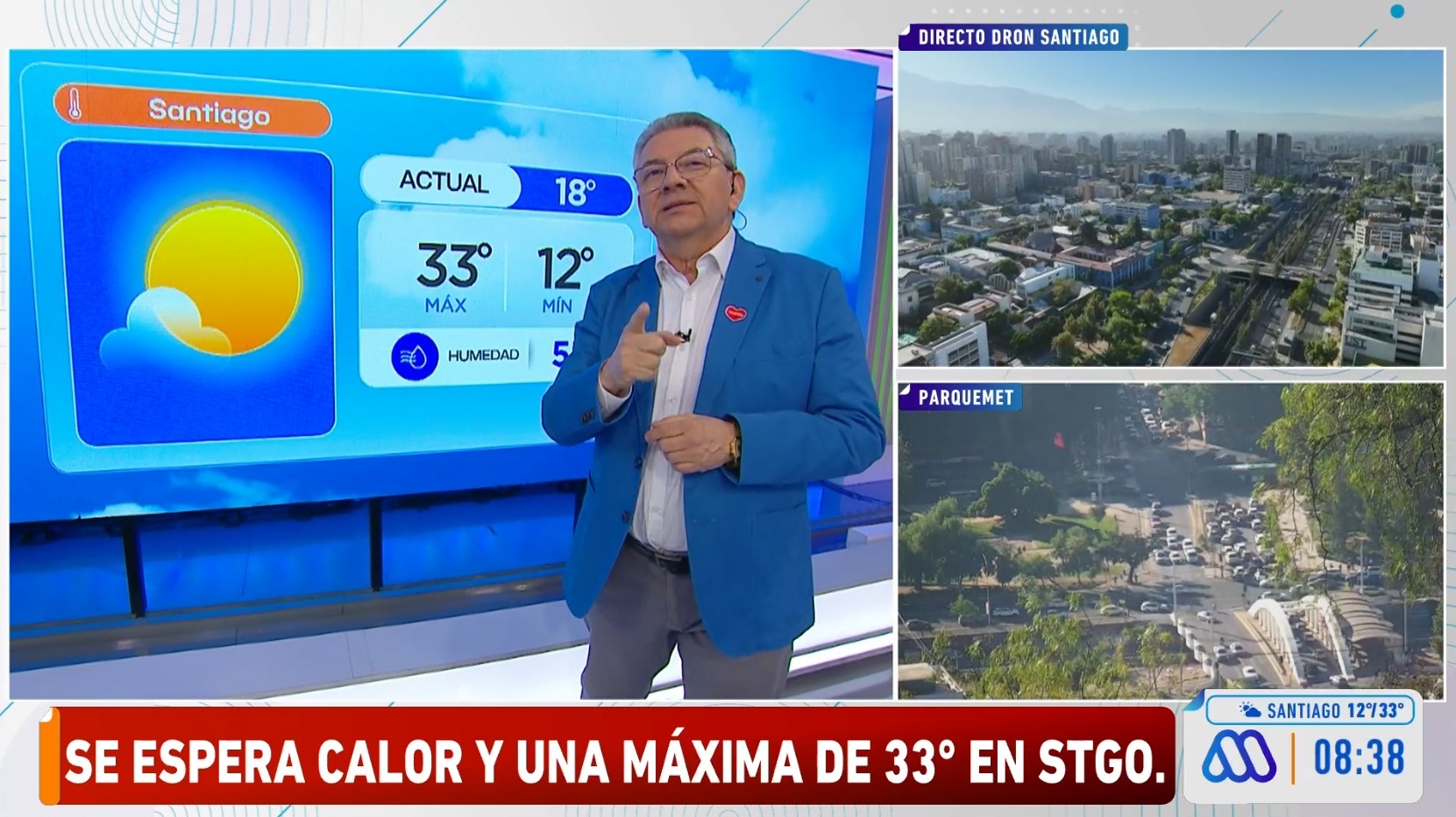 Esta jornada los termómetros podrían alcanzar hasta los 33 °C, según el pronóstico del meteorólogo de Mega, Jaime Leyton.