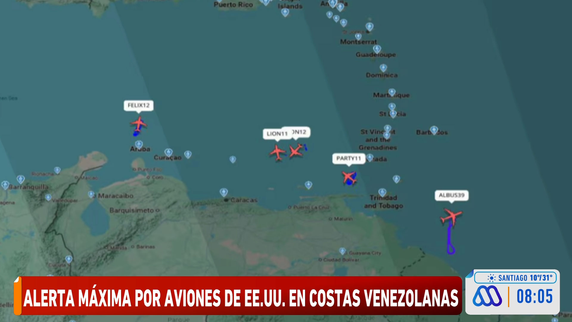 Aumenta la tensión: Cinco aviones estadounidenses fueron detectados en maniobras cerca de costa de Venezuela
