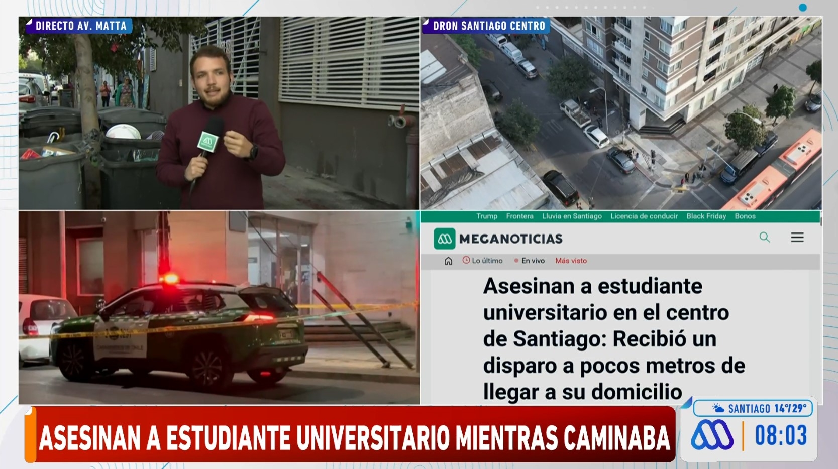 En horas de la madrugada de este jueves, un joven universitario de 27 años fue asesinado a balazos en el sector del barrio Matta Sur, en la comuna de Santiago.
