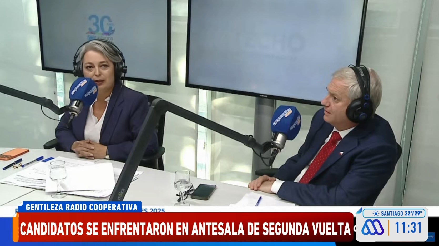 Los candidatos presidenciales Jeannette Jara y José Antonio Kast protagonizaron un tenso momento durante su primer debate a la espera de la segunda vuelta.