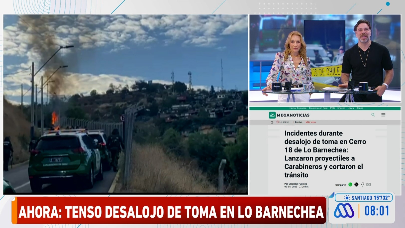 Una serie de incidentes se registran en distintas zonas del Cerro 18, en la comuna de Lo Barnechea, en el marco del desalojo de la toma ubicada en la Quebrada Las Zorras.