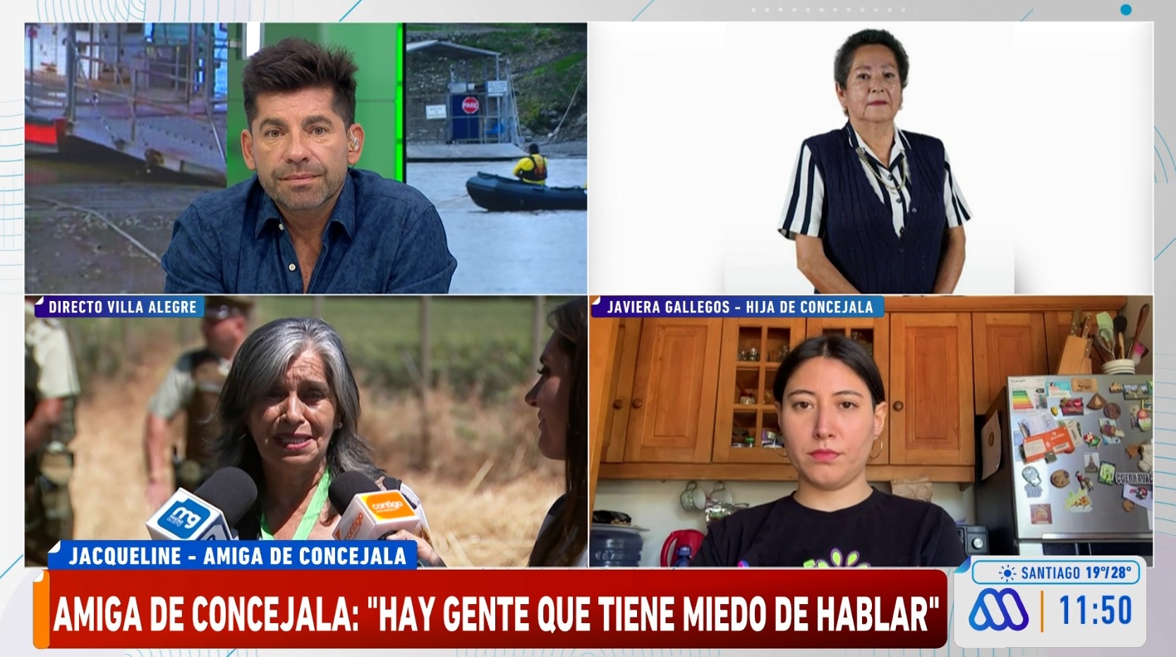 De todas formas, la hija de la concejala, Javiera Gallegos, aseguró que no tenía miedo de hablar y que entre las personas que habrían decepcionado a su madre se encuentran Arturo Palma, alcalde de Villa Alegre; Rodrigo Cancino, administrador municipal; y Alfredo Espinoza, encargado de Secplan del municipio.