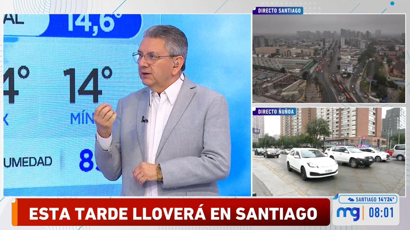 Según señaló, lloverá en "casi la totalidad de la Región Metropolitana (...) vamos a tener bastante nubosidad desde el comienzo de la jornada", destacando que se debe a un sistema frontal que se desplazará desde la zona sur del país.