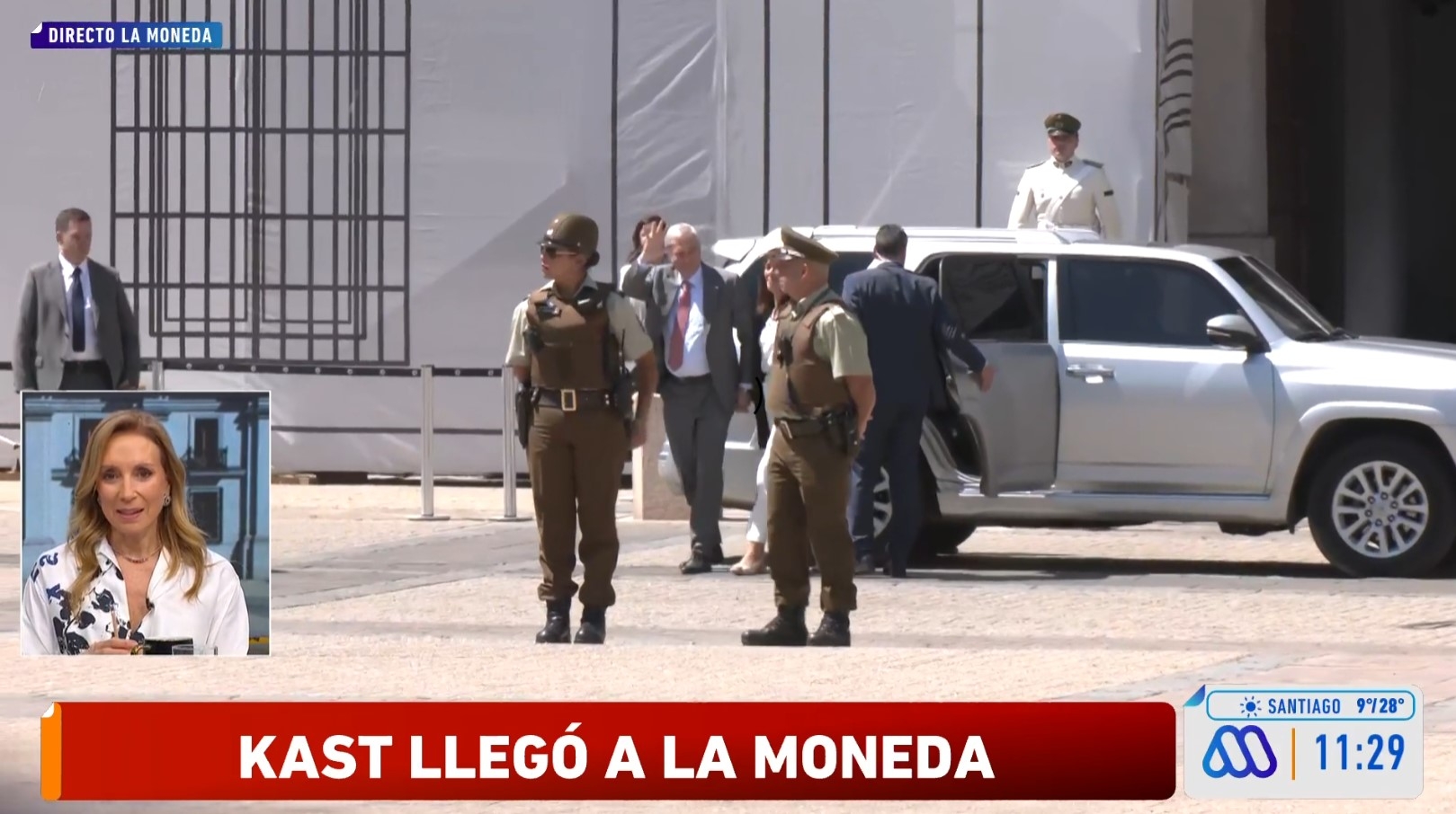 27 minutos antes de las 12 horas, el Presidente electo, José Antonio Kast, arribó al Palacio de La Moneda para reunirse con el Mandatario en ejercicio, Gabriel Boric.