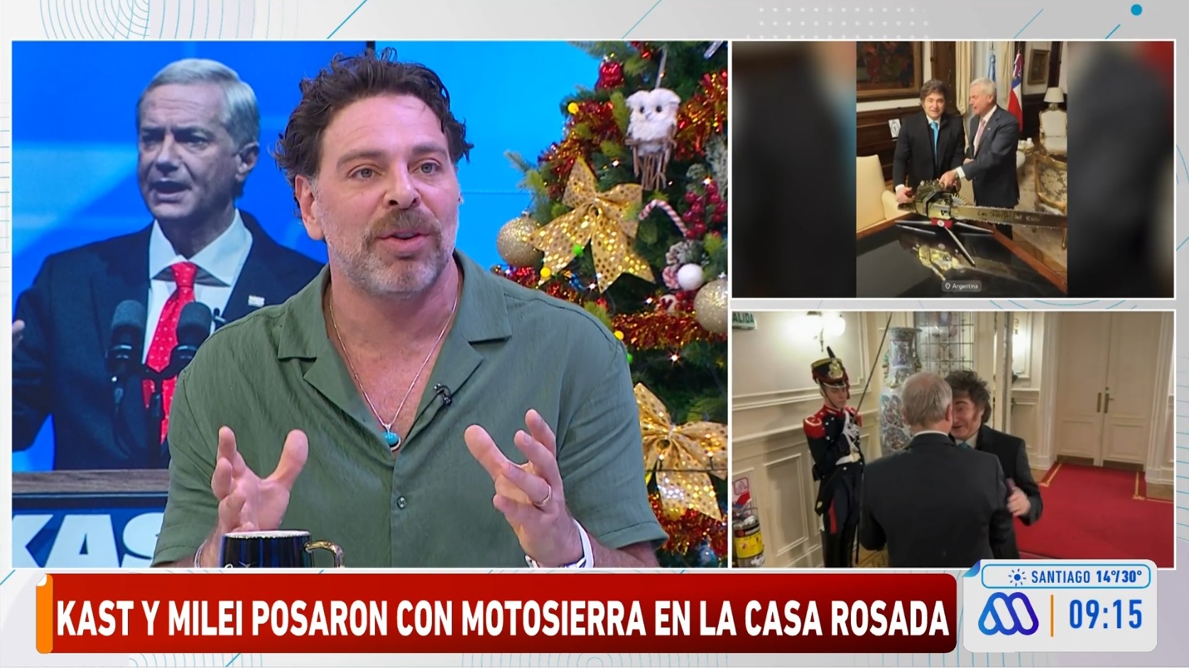 Durante la nueva edición del matinal, el comunicador valoró que el Presidente electo visite la nación vecina para reconstruir vínculos diplomáticos, pero cuestionó que se alinee de aquella manera simbólica con el jefe de Estado argentino, asegurando que "me parece que la motosierra es un símbolo absurdo y no funcional a las necesidades chilenas".