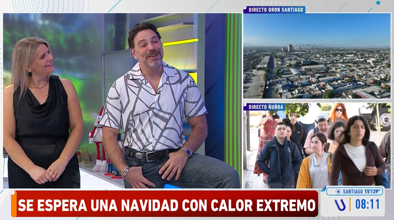 "Pero se te van a enfriar... o sea, se va a sentir fresco porque habrá 29 °C (este lunes)", complementó entre risas Leyton.