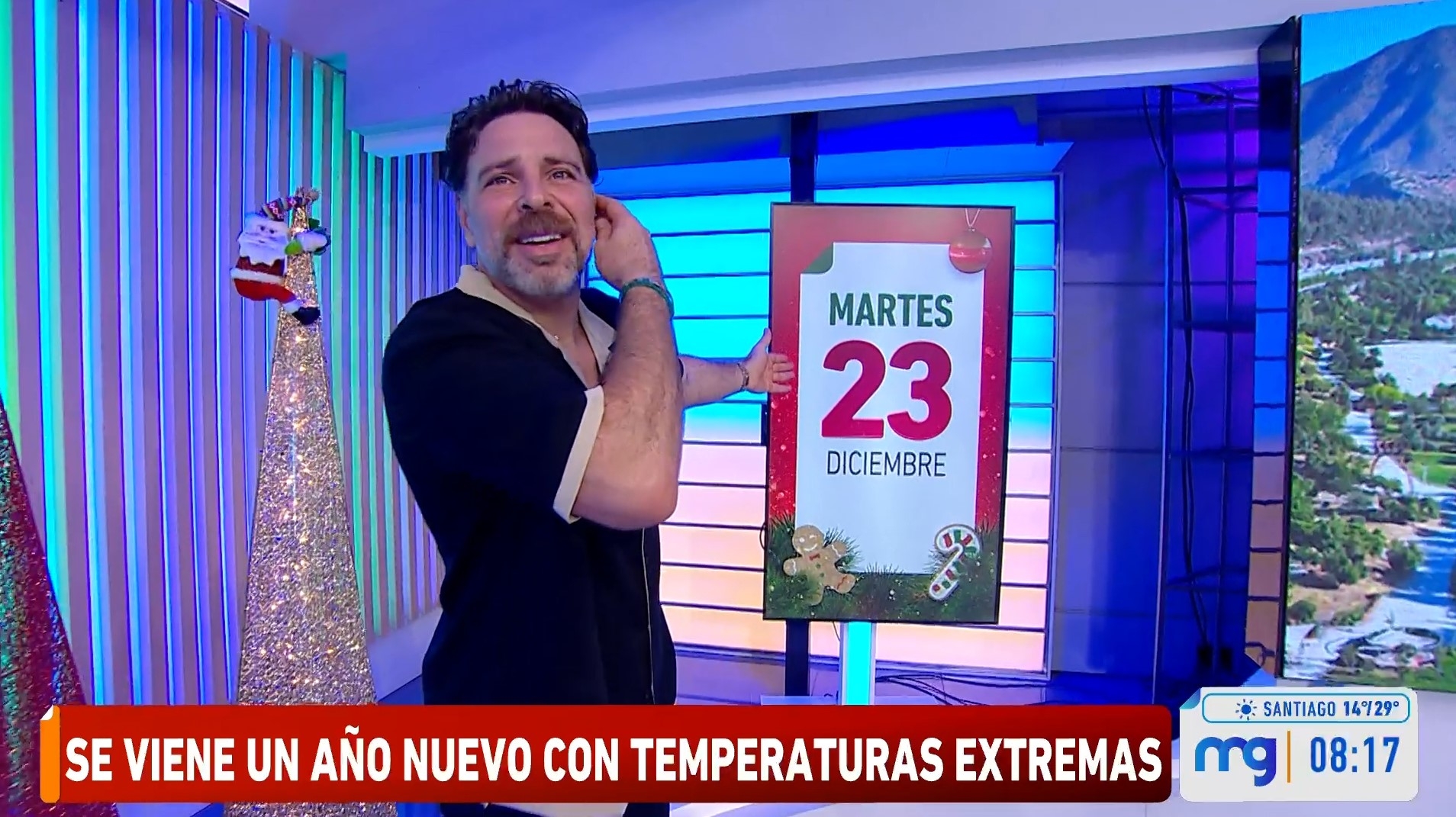 En ese momento, José Antonio interrumpió, sin razón aparente, la presentación. "Venga para acá, venga. Mire, ¿qué es esto? ¿Qué es esto?", le dijo a la cámara mientras señalaba una de las pantallas del estudio, que usualmente funciona como calendario, pero cuya fecha se mantenía en el martes 23 de diciembre.