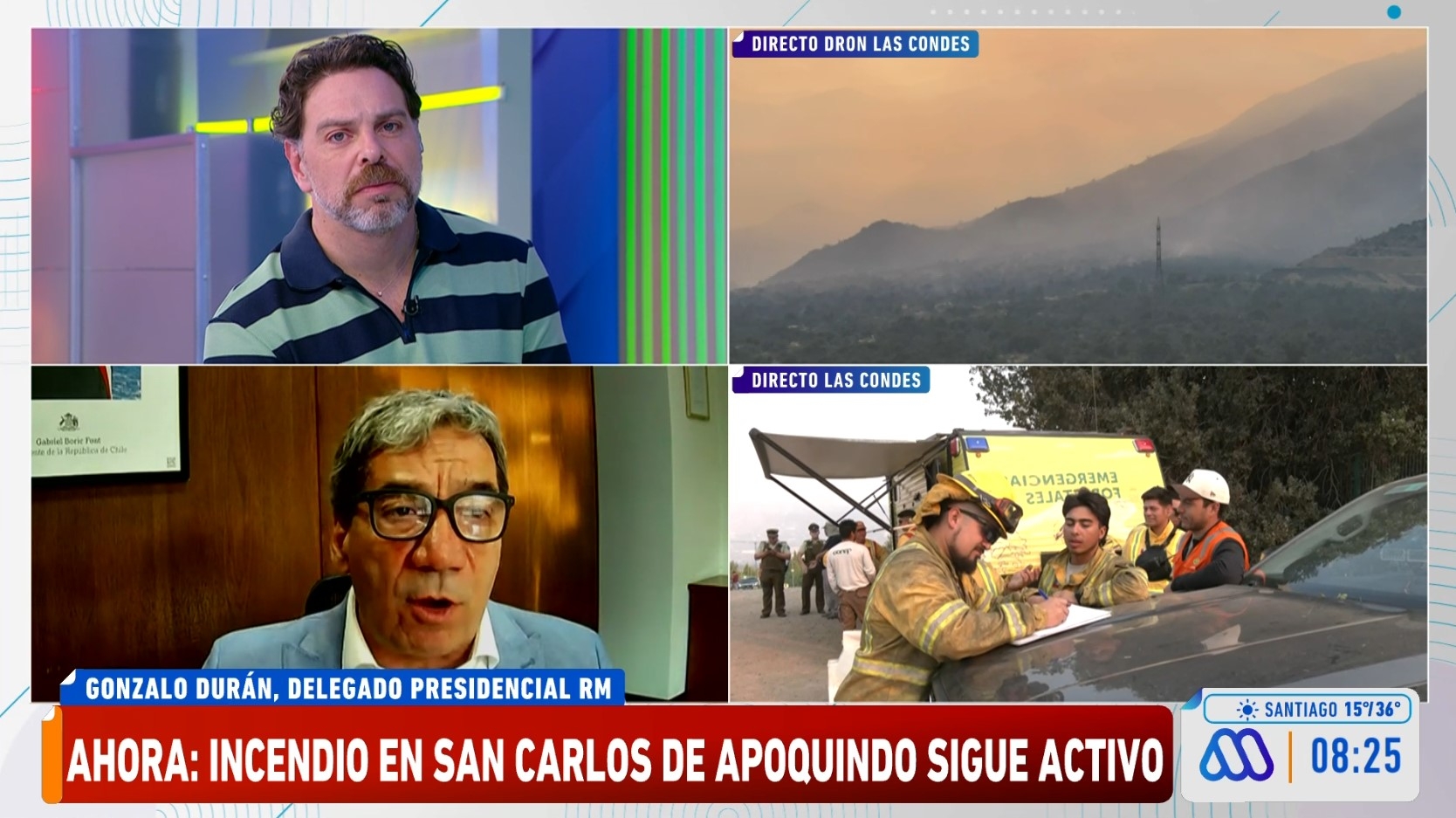 Al respecto, el delegado presidencial de la Región Metropolitana, Gonzalo Durán, indicó en diálogo con Mucho Gusto que, pese al arduo trabajo de voluntarios de Bomberos y Conaf que se realizó durante la noche, la emergencia sigue sin estar controlada.