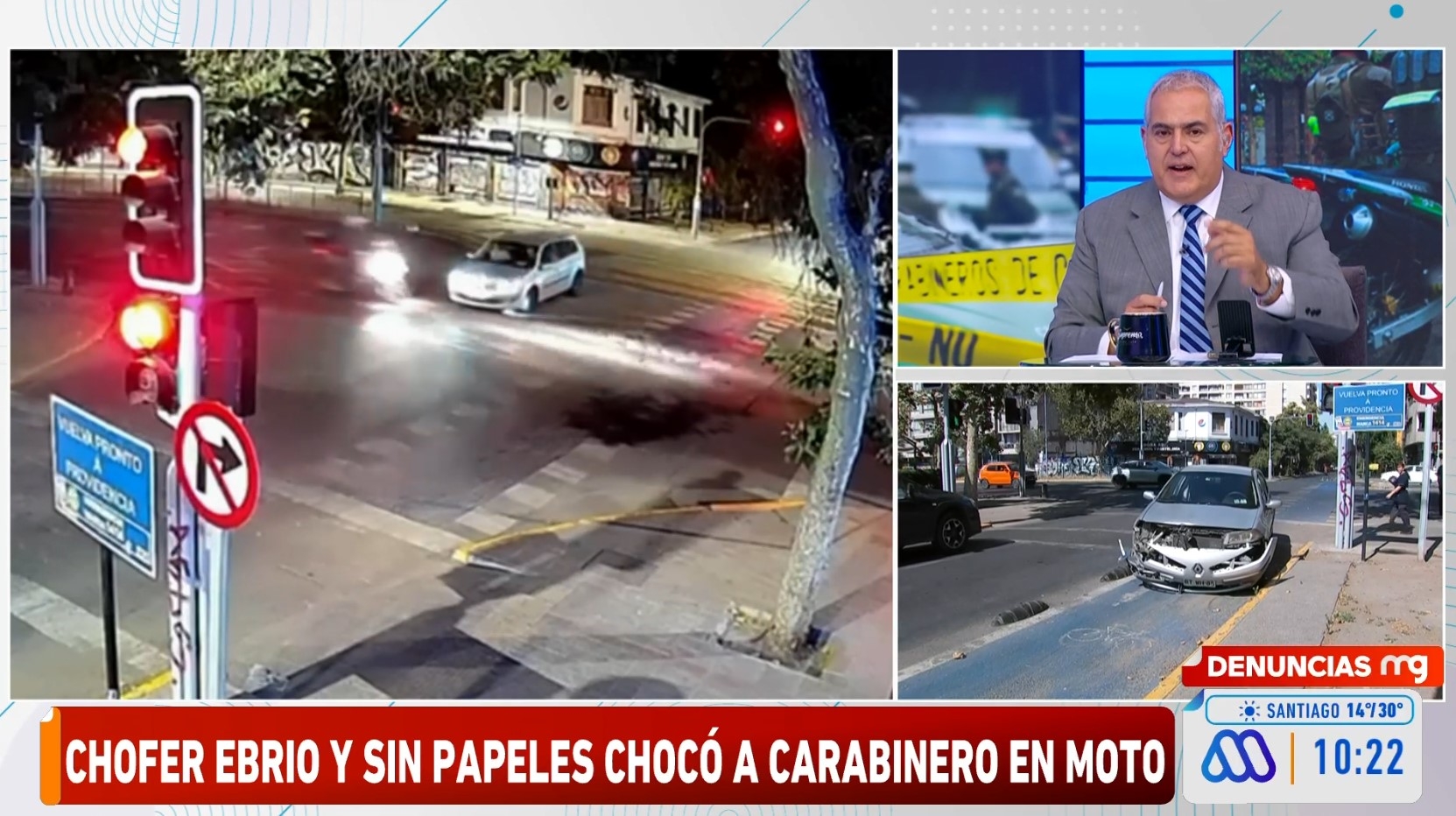 Con lesiones leves terminó un carabinero de franco tras ser impactado por un automovilista que manejaba en estado de ebriedad y con la documentación vencida en la comuna de Providencia, Región Metropolitana.
