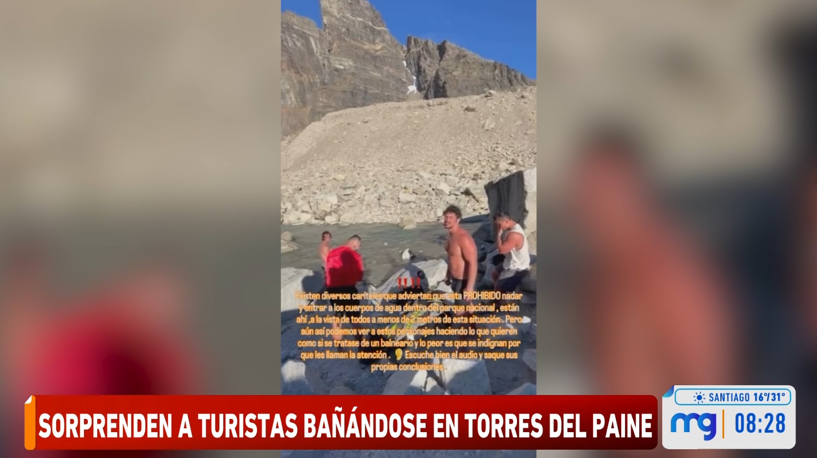 Un video viralizado en redes sociales muestra a un grupo de turistas bañándose en la Laguna Las Torres, al interior del Parque Nacional Torres del Paine, en la región de Magallanes y la Antártica Chilena.