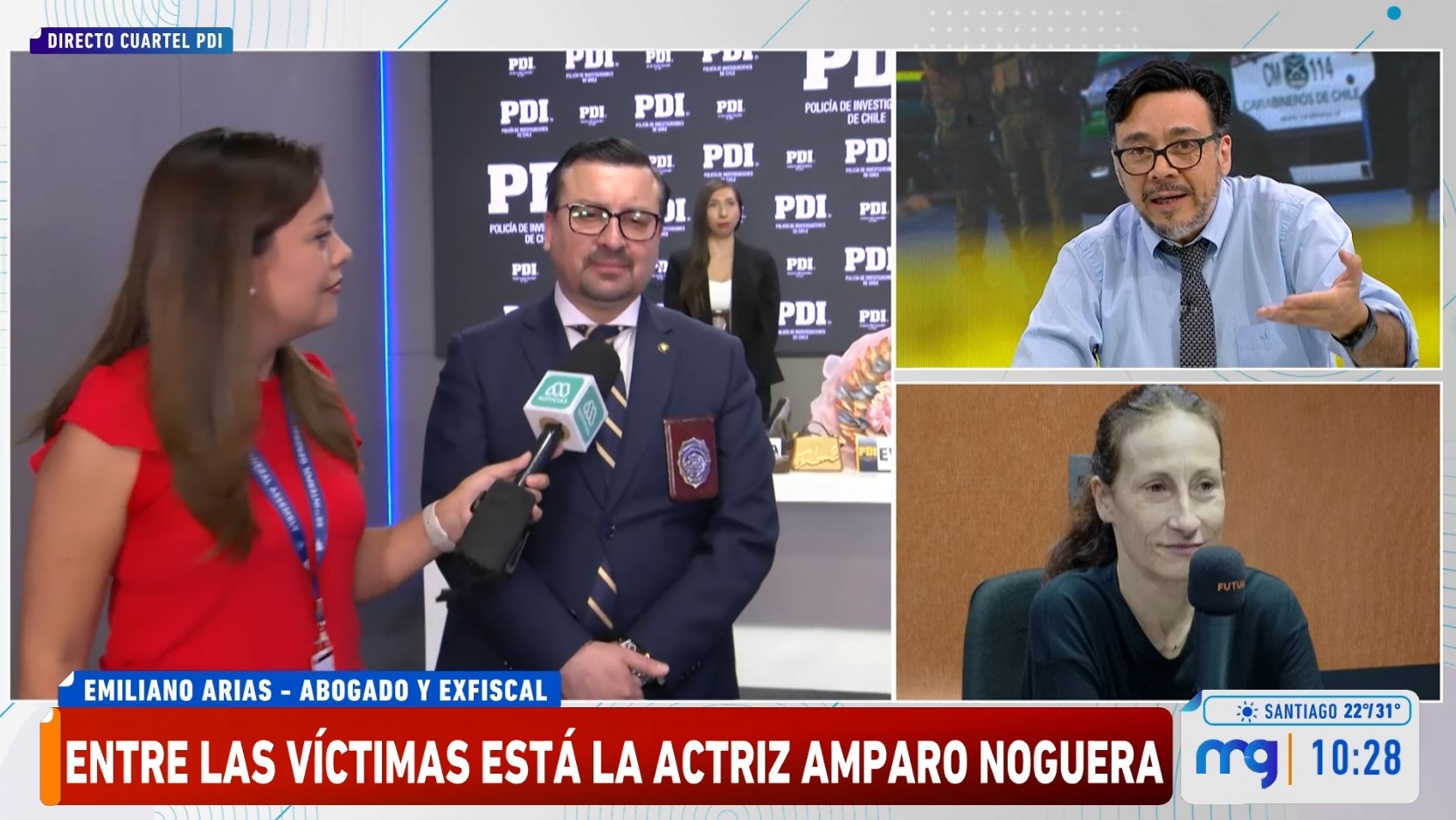 La Policía de Investigaciones (PDI), junto con la Fiscalía Metropolitana Oriente, desarticuló una organización criminal dedicada a las estafas y que operaba con sujetos desde el interior de recintos penitenciarios. Entre las víctimas se encuentra la actriz Amparo Noguera, a quien perjudicaron con cerca de $700 millones.