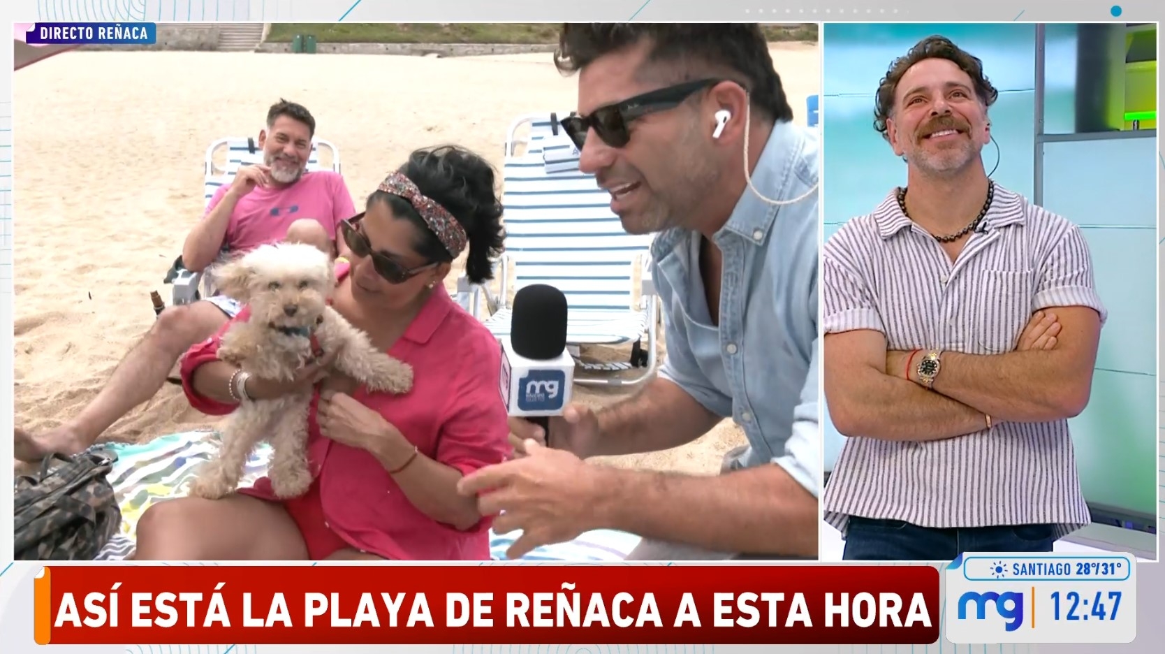 Así, el reportero de Mucho Gusto recorrió el borde costero que, hoy por hoy, destaca por la presencia de turistas argentinos. Aunque en medio de quitasoles, encontró a una familia chilena que lo recibió con los brazos abiertos, mas no su perro.