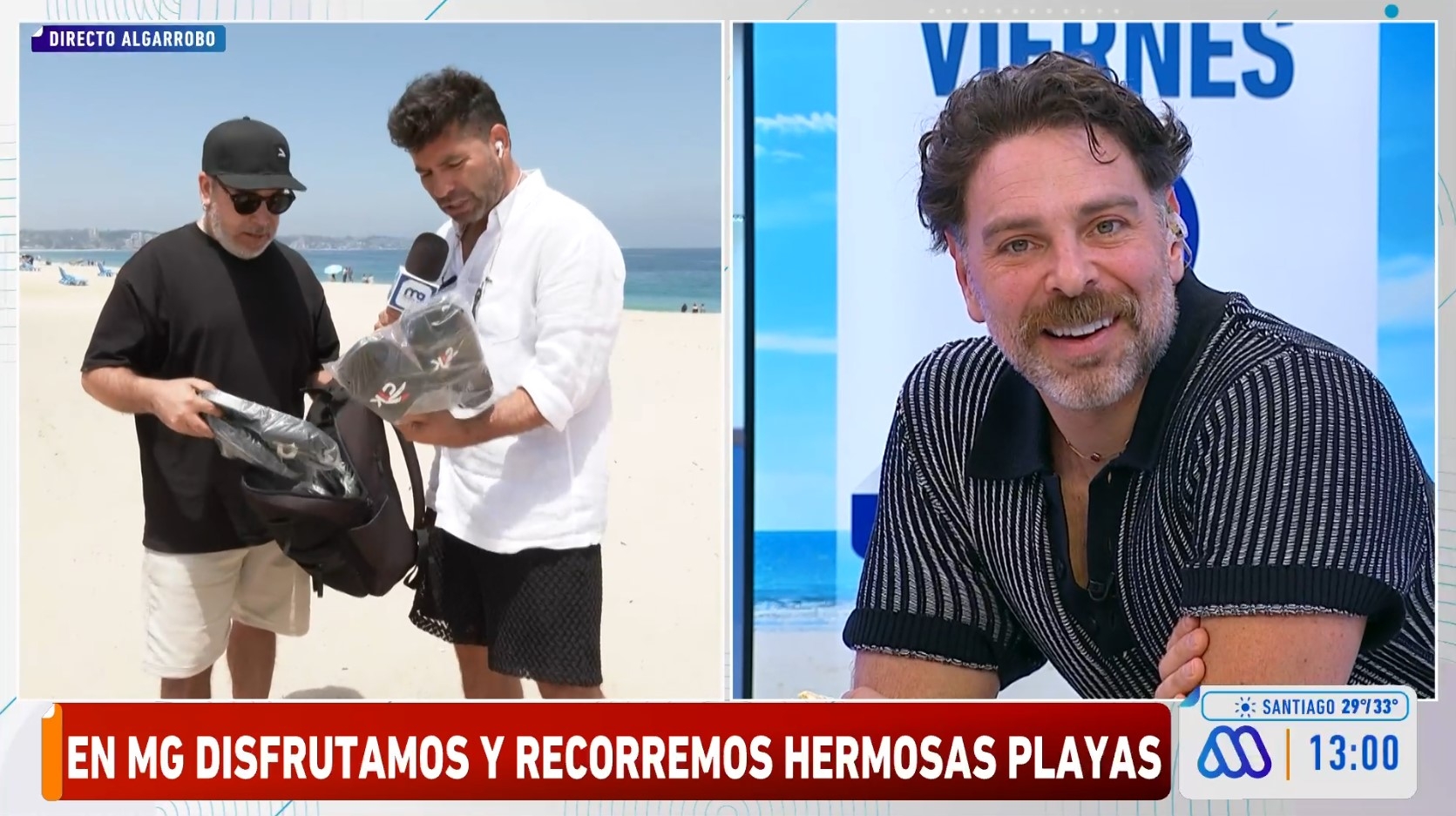 Mientras el comunicador se encontraba en la playa, llegó un televidente a entregarle al equipo del matinal un presente: gorros y sandalias.