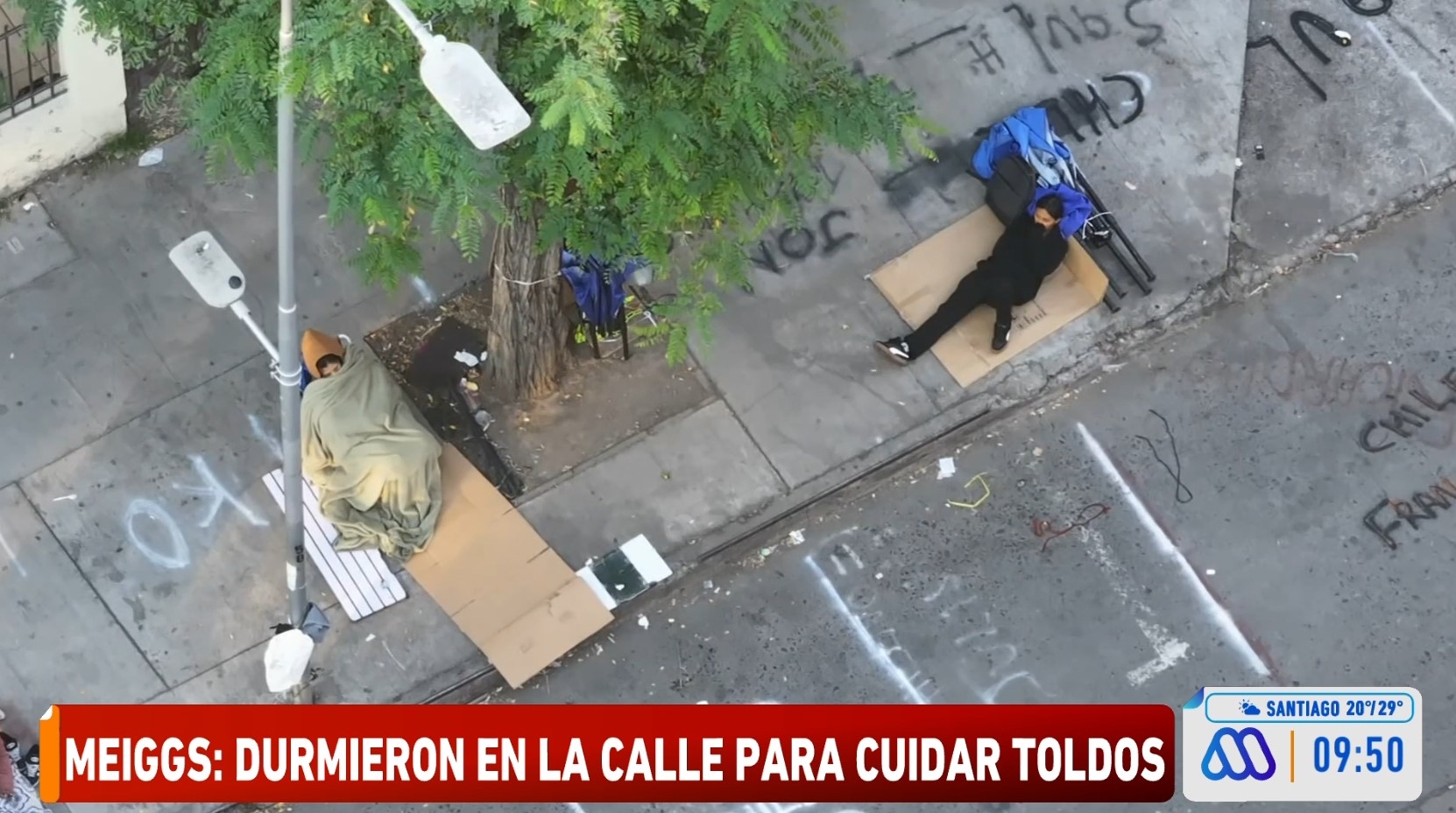 Los videos, registrados durante la madrugada de este miércoles, dieron cuenta de un grupo importante de personas que utilizaron cartones y mantas para pernoctar en la vía pública, para resguardar los espacios marcados con nombre, apellidos y apodos.