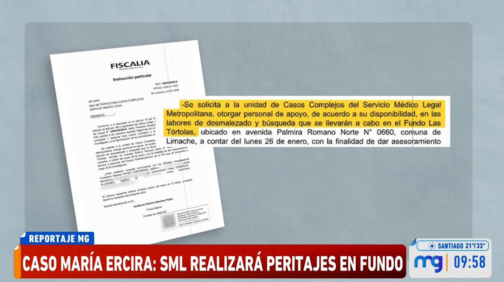 La Fiscalía de Limache solicitó al Servicio Médico Legal (SML), específicamente a su Unidad de Casos Complejos, que designe personal de apoyo para que realice nuevas diligencias en el Fundo Las Tórtolas de Limache.