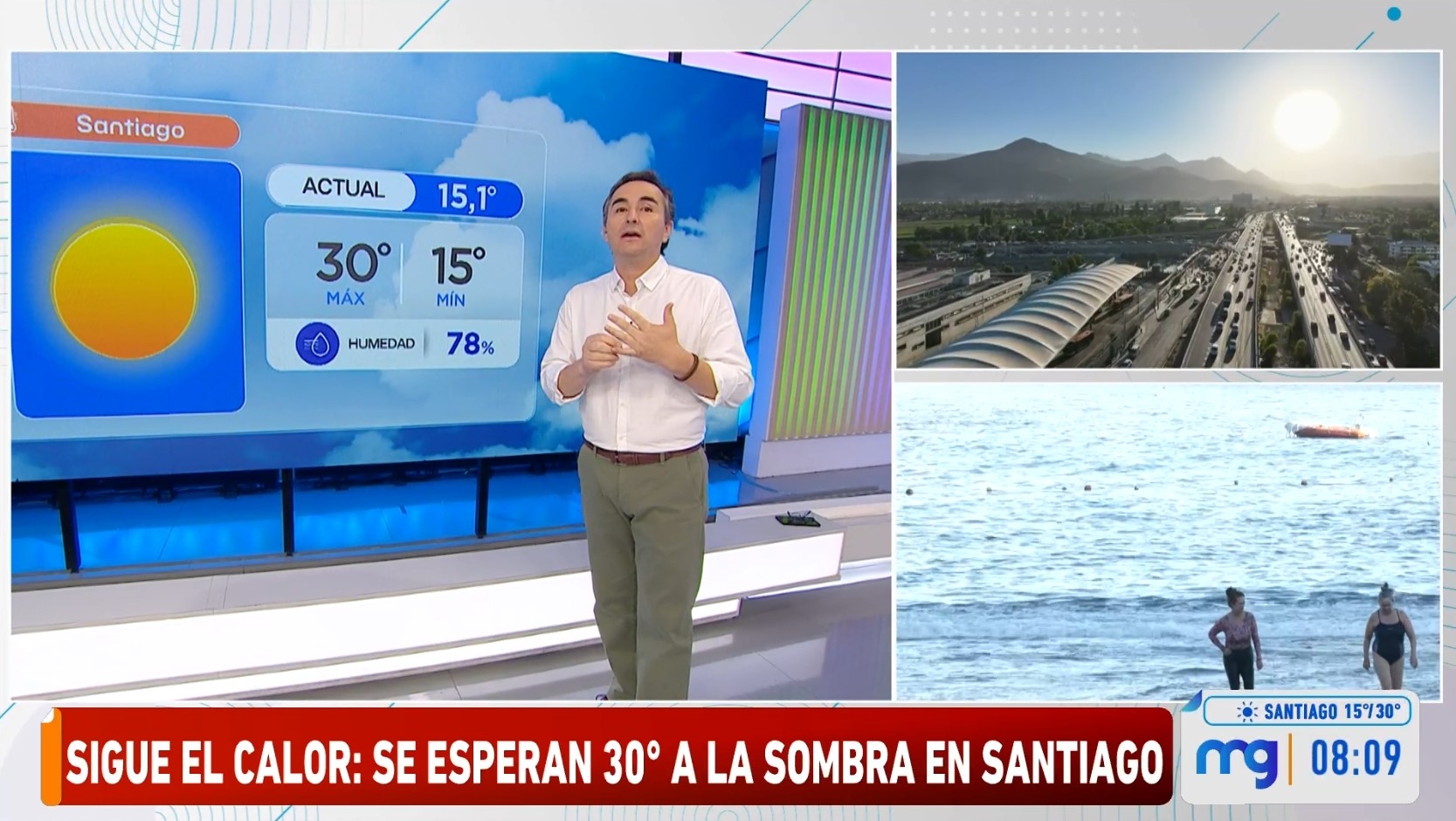 Sepúlveda comentó que esta jornada nos encaminamos a los 30 °C a la sombra en el Gran Santiago, con sectores que pueden rondar los 32 °C.