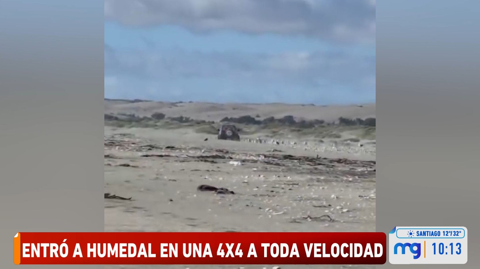 Embistió a aves: Video muestra a conductor en camioneta 4x4 a toda velocidad en Humedal de Mantagua