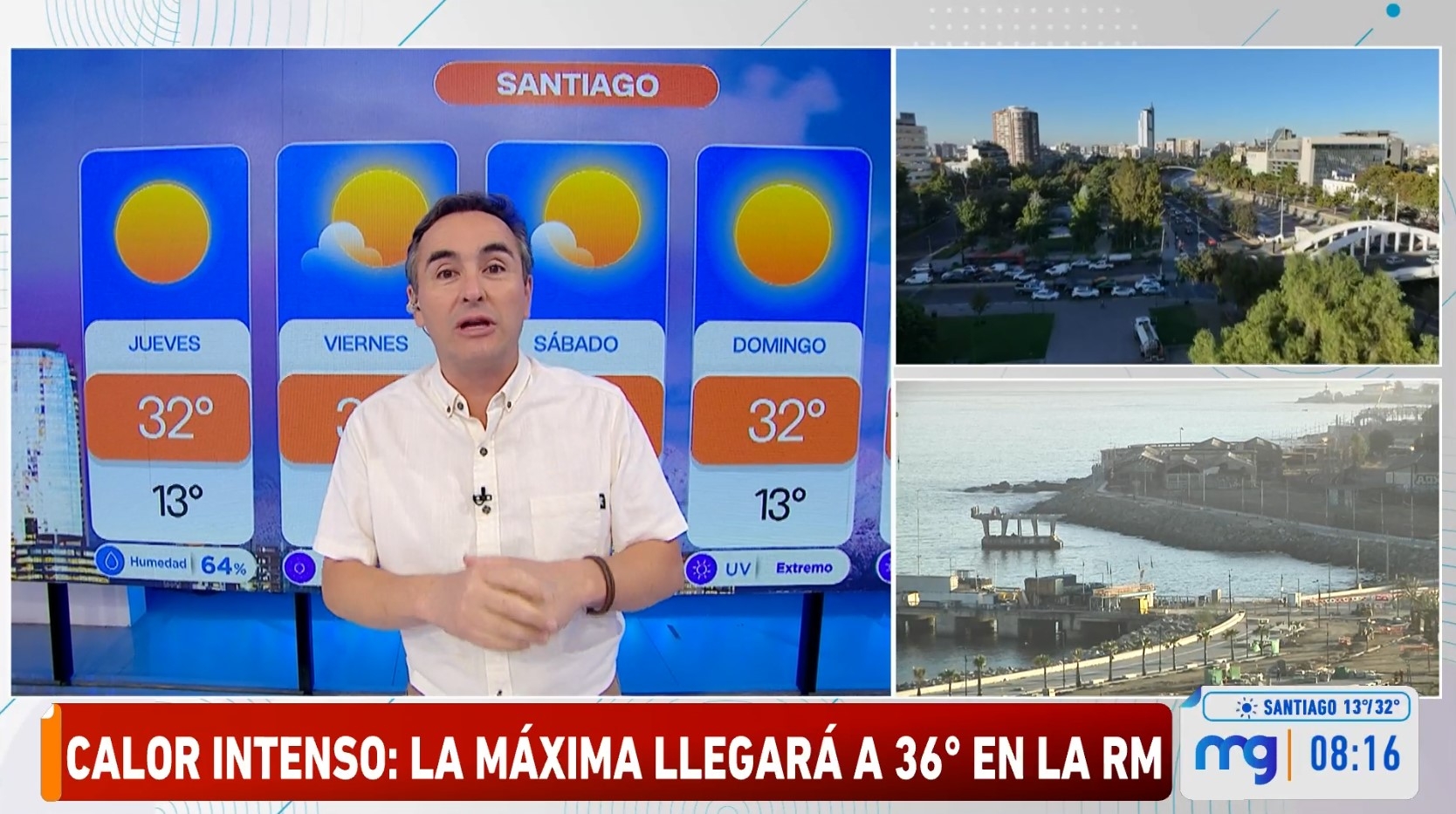 En su participación en Mucho Gusto, Sepúlveda partió señalando que este jueves los termómetros se alzarán hasta los 32 °C en el centro de Santiago, a eso de las 4 de la tarde.