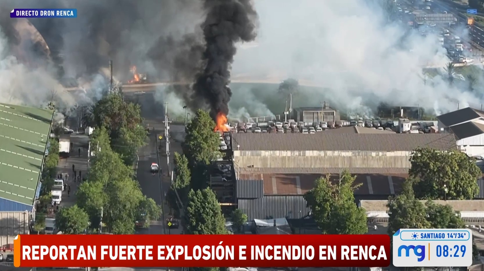 Una fuerte explosión y posterior incendio se produjo la mañana de este jueves en un depósito de autos en la zona norte de Santiago.