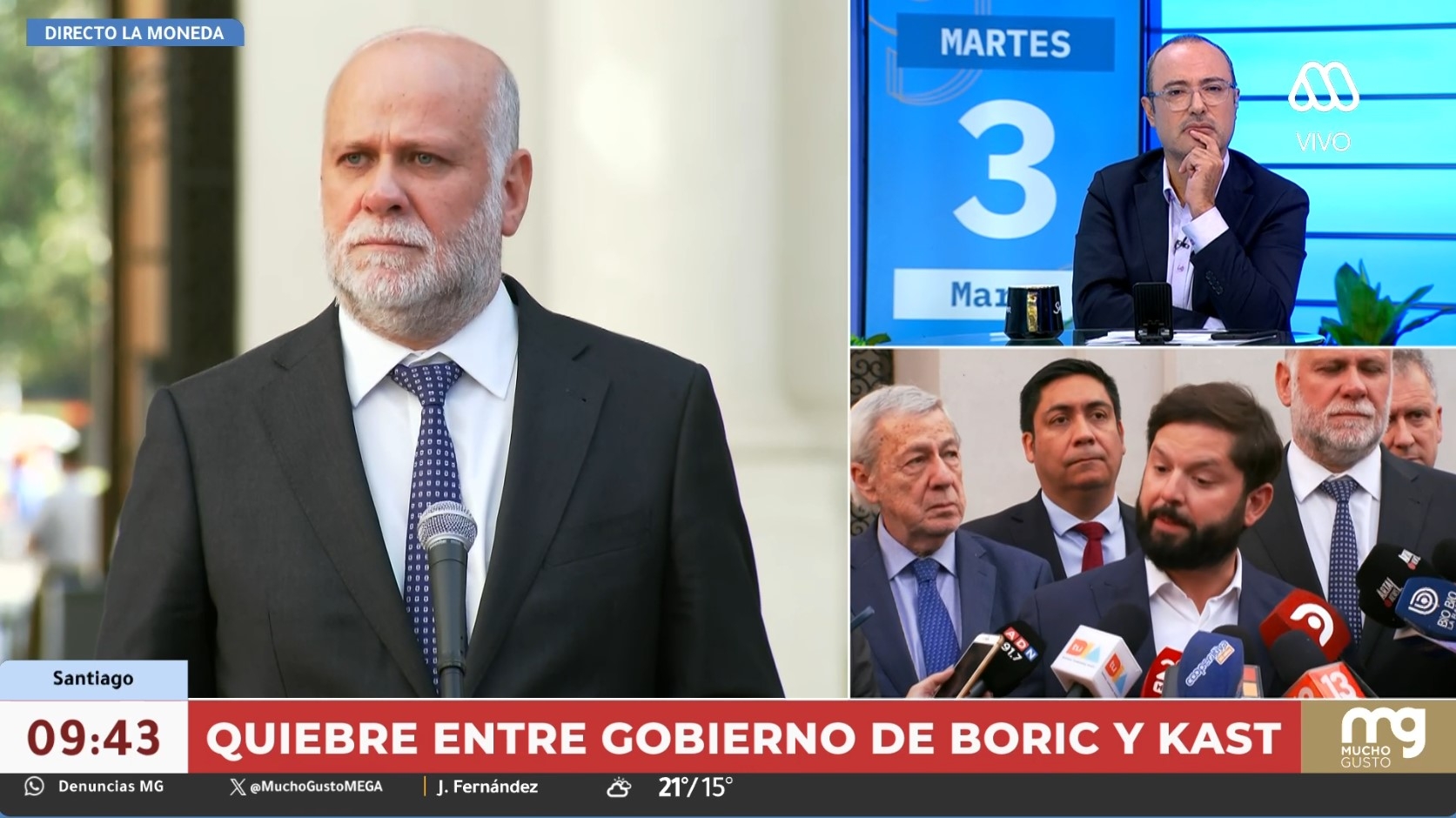 De esta manera, el secretario de Estado reafirma lo expuesto por el Mandatario, quien señaló que el 18 de febrero le informó en una llamada sobre el proyecto de cable de fibra óptica y que, ahora, Kast le exigió retractarse de aquella información ante la opinión pública.