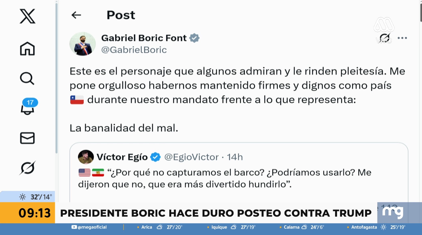 "La banalidad del mal": Presidente Boric en picada contra Trump tras burlas por hundimiento de barco iraní