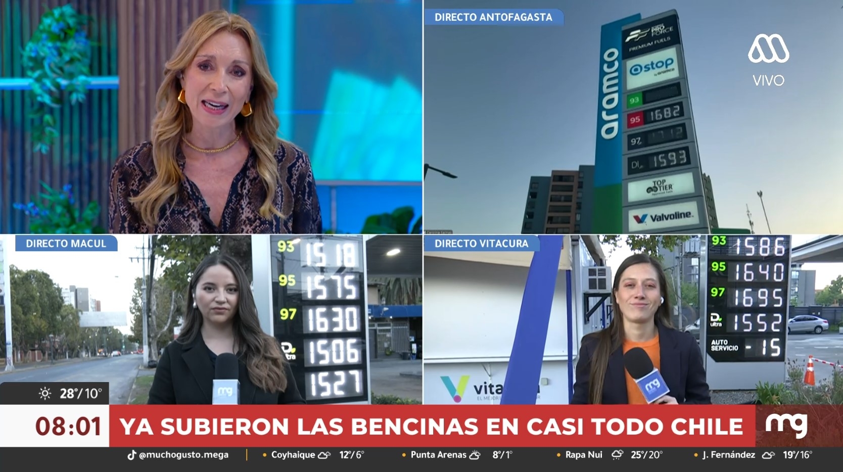 Según reportó la periodista de Mucho Gusto, Darynka Marcic, algunas estaciones actualizaron sus precios durante esta mañana. Aún así el panorama contrasta con los días previos. Por ejemplo, en Vitacura la afluencia de automovilistas era mucho menor.